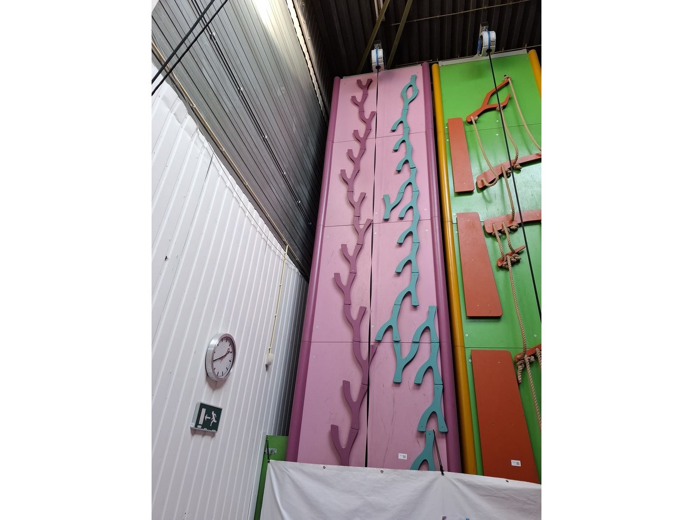 Merk: Bush Product: Klimwand Afmeting: afm. ca 750x150x90cm Specificaties: incl. Tru Blue systeem (valbeveiliging); metalen frame met beplating