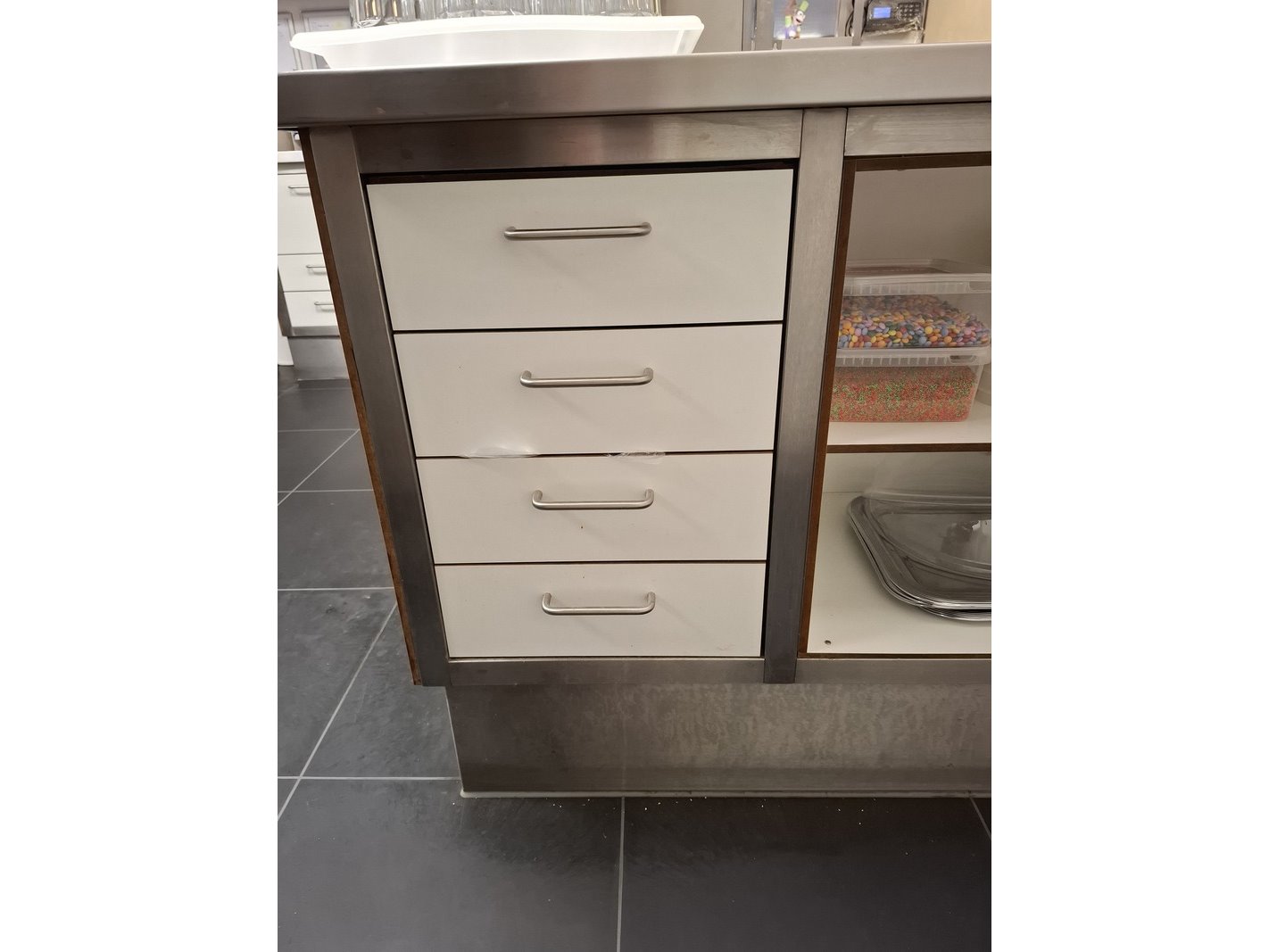 Product: Horeca werkbank met spoelbak Afmeting: hxbxd ca 90x475x60cm Specificaties: RVS werkblad