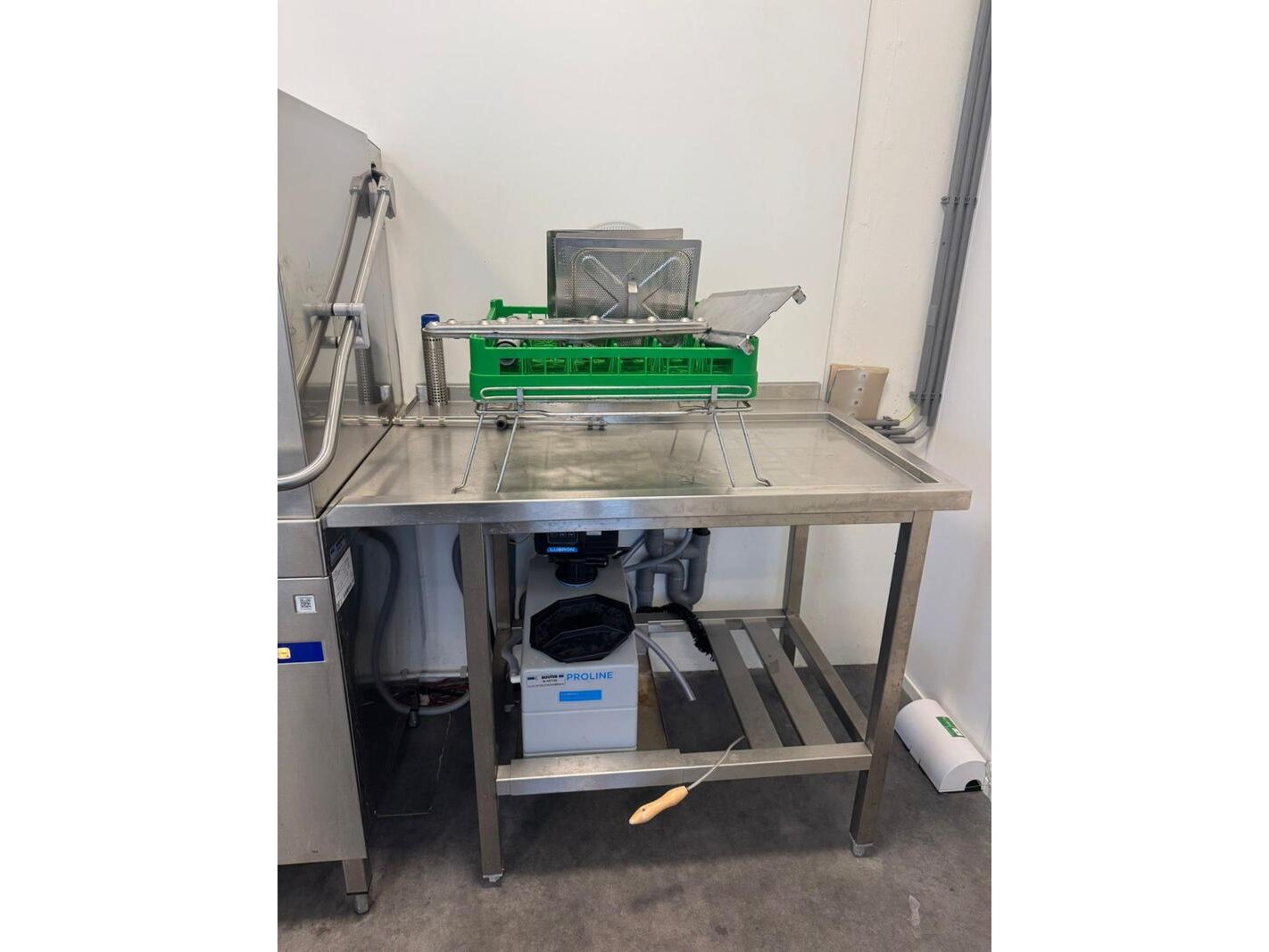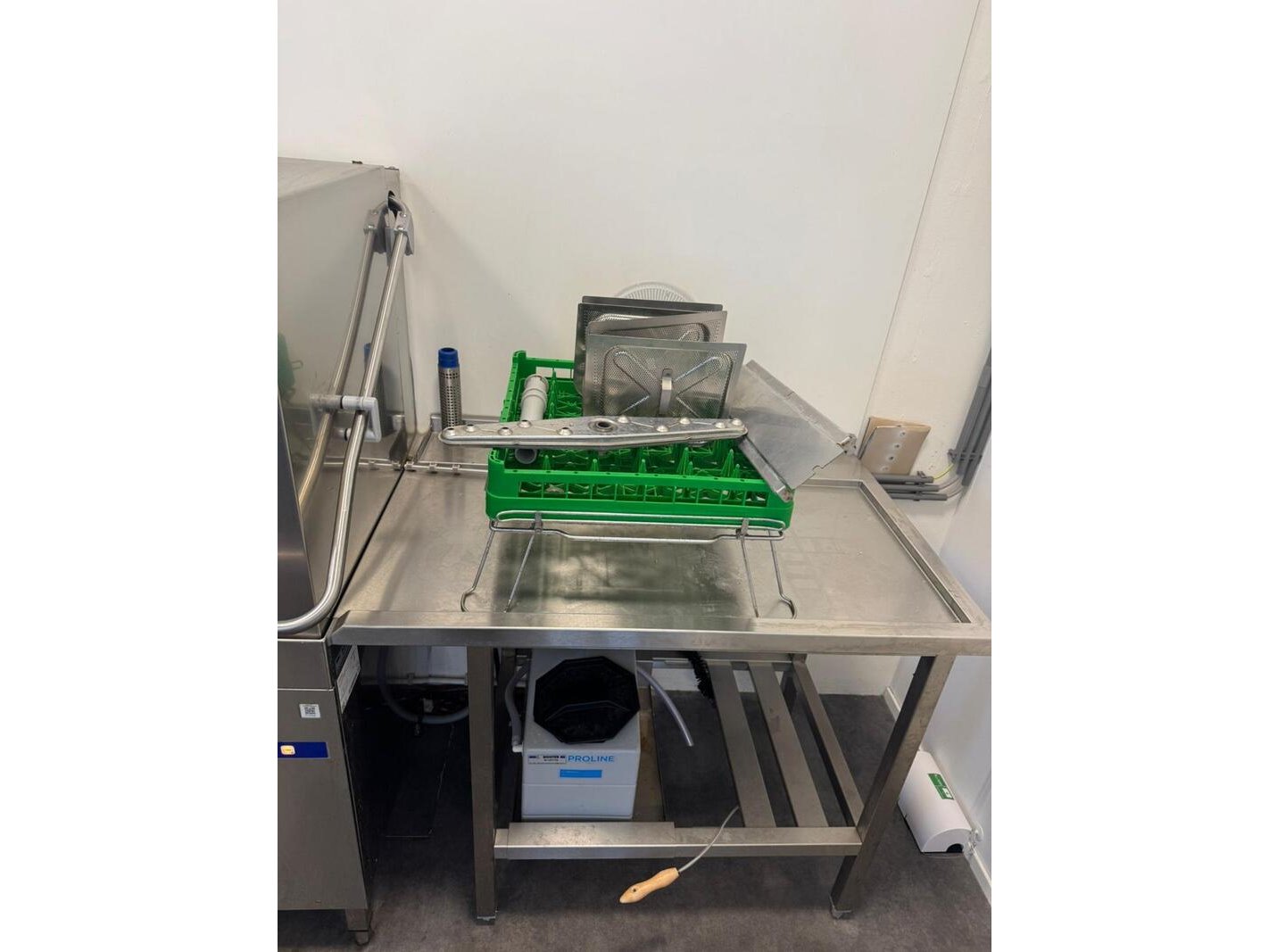 Merk: CaterTech Product: Complete horeca wasstraat doorschuif vaatwasser inclusief Conditie: gebruikt Specificaties: Zeer nette en complete horeca wasstraat te koop aangeboden, bestaande uit een CaterTech doorschuif vaatwasser inclusief RVS spoeltafels, voorspoeldouche en waterontharder. De installatie is volledig werkend gedemonteerd en heeft weinig draaiuren. Ideaal voor professioneel gebruik in horeca, grootkeukens en cateringbedrijven. Specificaties: • Merk: CaterTech • Model: TV IDS1010ERC • Aansluiting: 380 tot 415V krachtstroom • Inclusief waterontharder (Lubron Proline) • Inclusief RVS aan en afvoertafels • Inclusief voorspoeldouche en korven De set is geplaatst in 2024 door Bouter horeca grootkeukens. Met onderhoudscontract. Conditie: Netjes gebruikt, goed onderhouden en volledig werkend gedemonteerd. Momenteel opgeslagen. Geschikt voor direct gebruik na installatie en ideaal voor restaurants, hotels en grootkeukens die een complete spoeloplossing zoeken. Let op: Kraanaansluiting en spuitslangaansluiting zijn afgebroken.