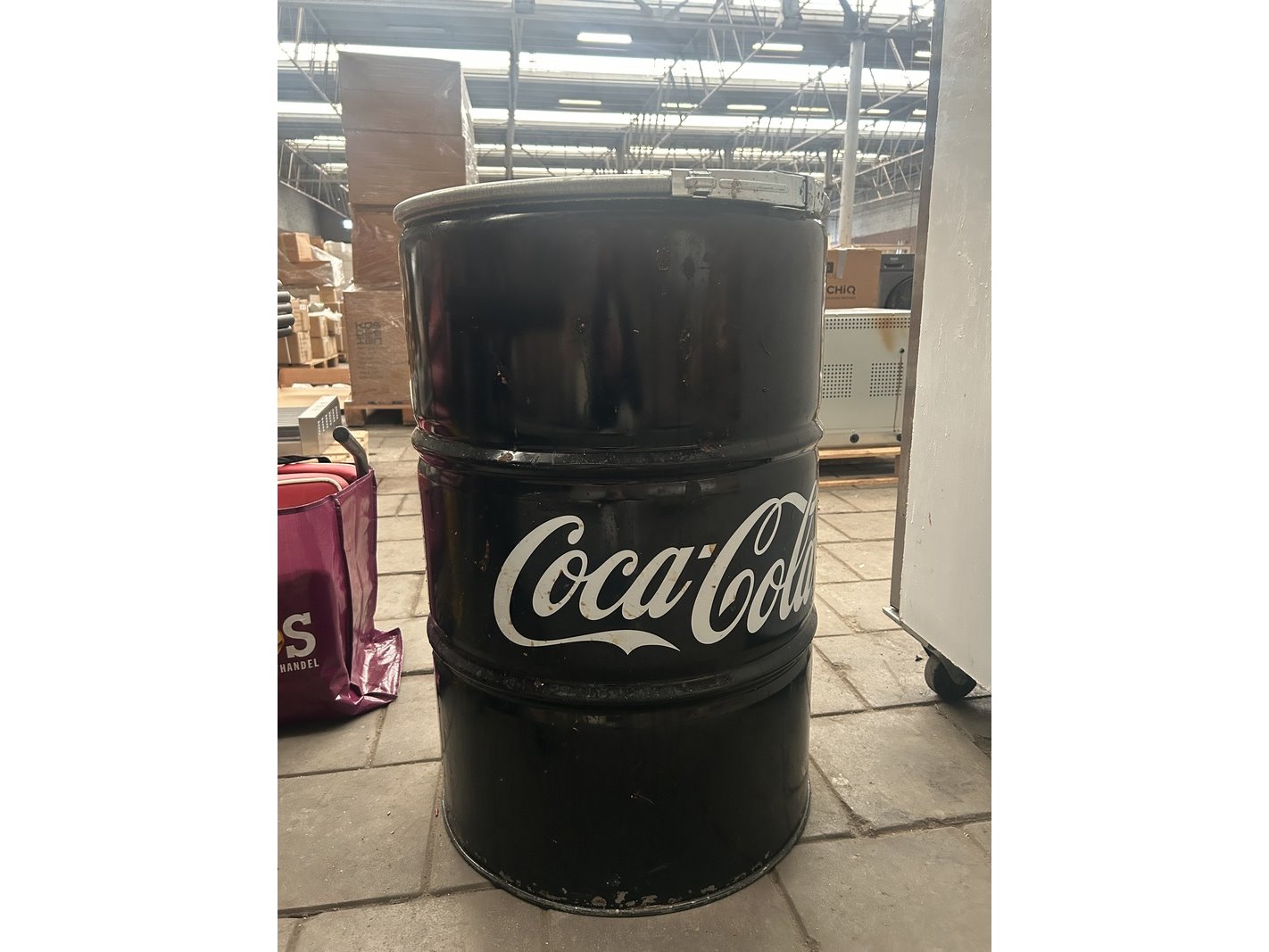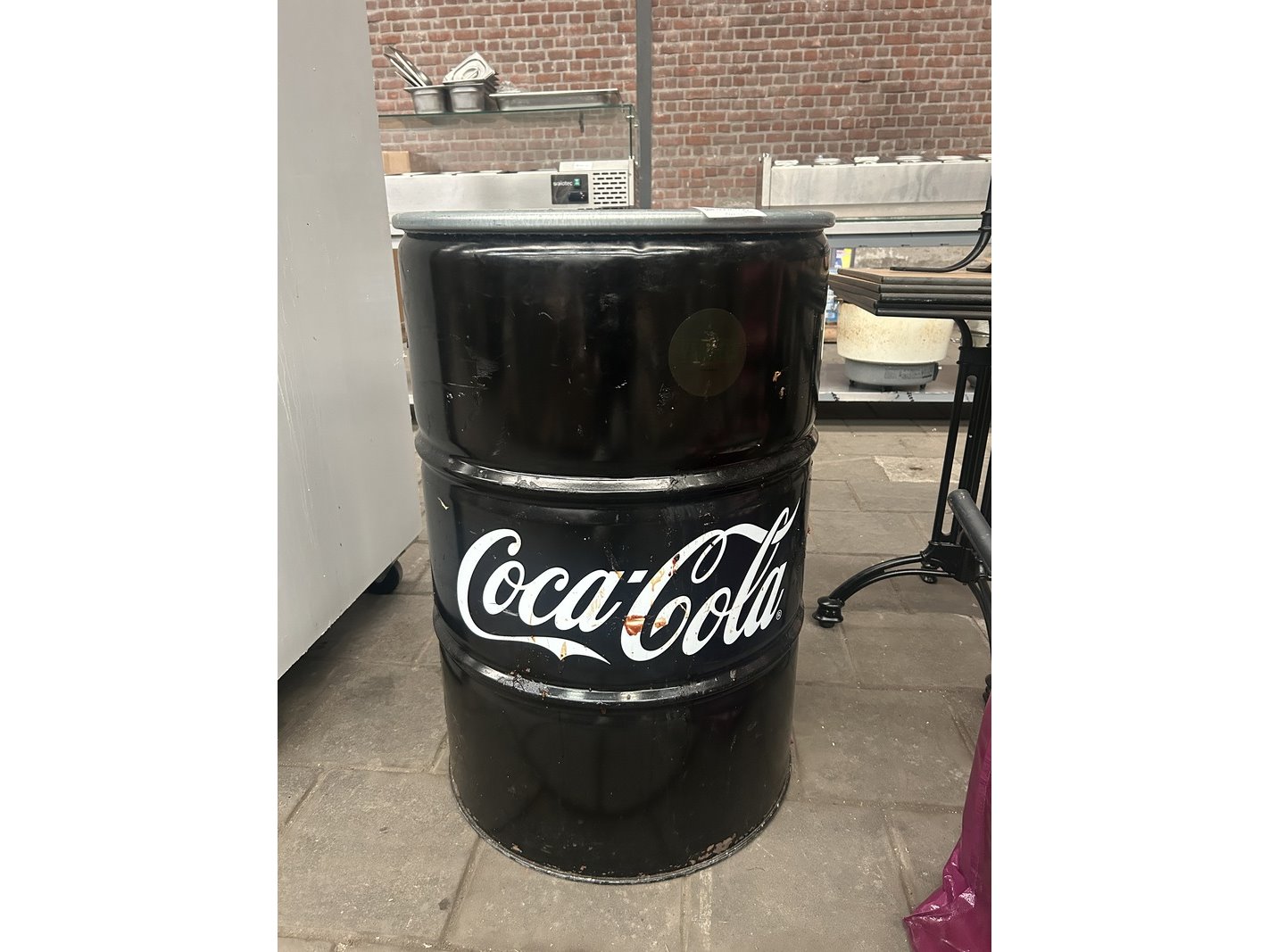 Product: Coca Cola olievat reclame object/onderstel statafel Conditie: gebruikt