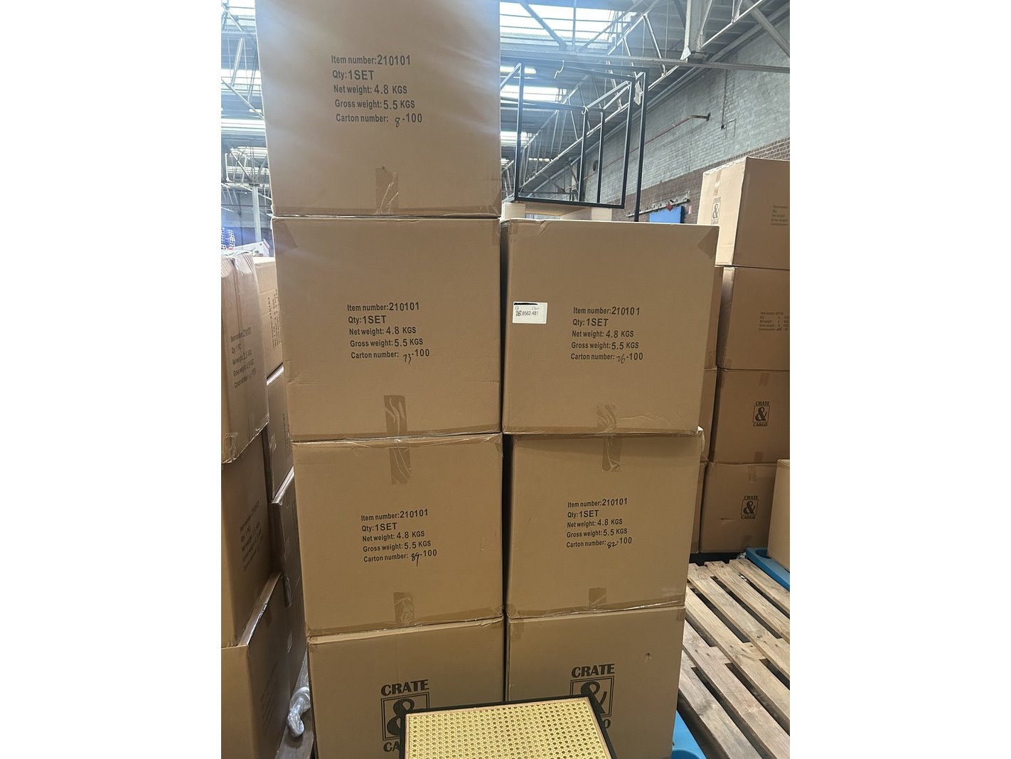 Ca. 17x set van 2 rotan bijzettafels, crate & cargo