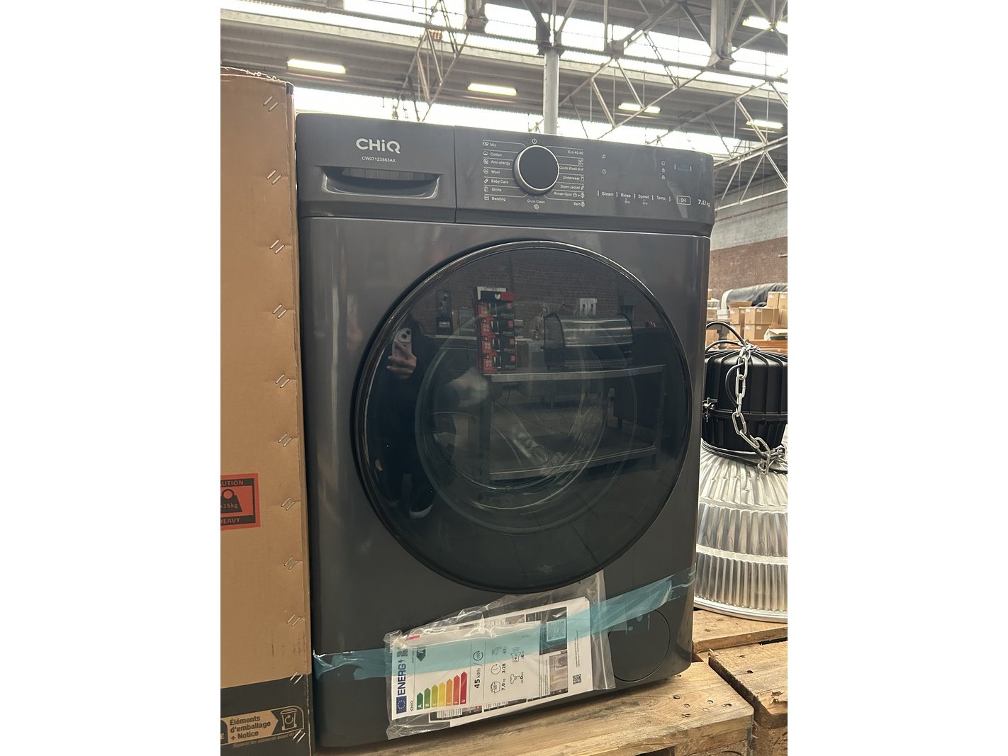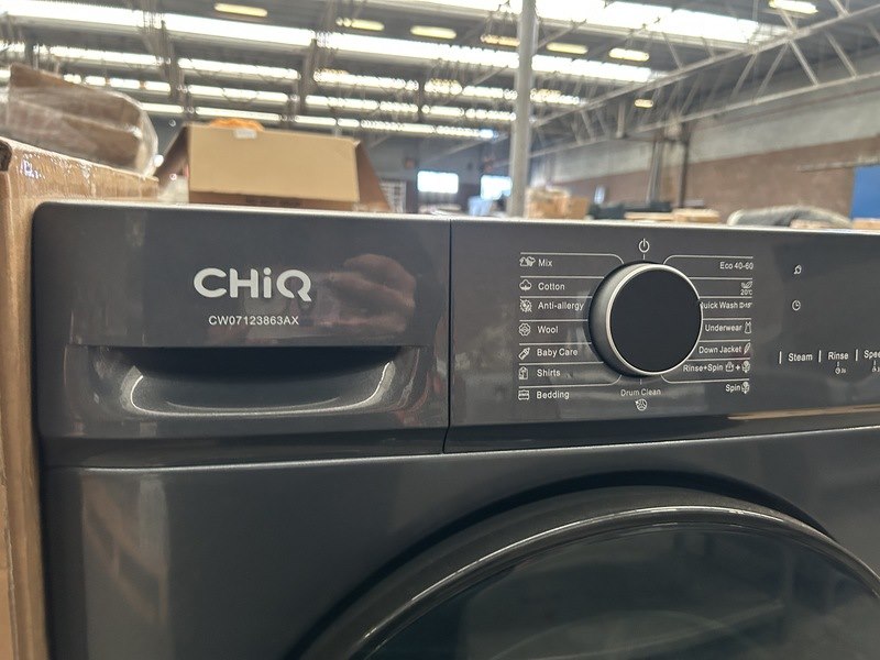 Merk: CHiQ Product: Wasmachine 7 kg AI Smart energieklasse A Afmeting: 600x465x850 mm Specificaties: Demo model. Beschadigd.