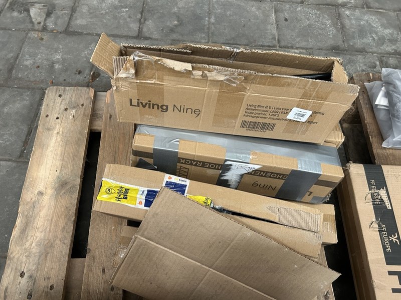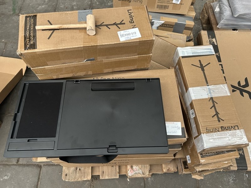 Merk: Living Nine Product: Partij kledingrekken/schoenenrekken Specificaties: Nieuw en showroom modellen. Verpakking beschadigd.