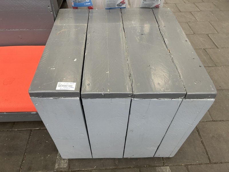 Product: Houten loungebank 300x300 cm Conditie: gebruikt Specificaties: Beschadigd. Met twee kussens.