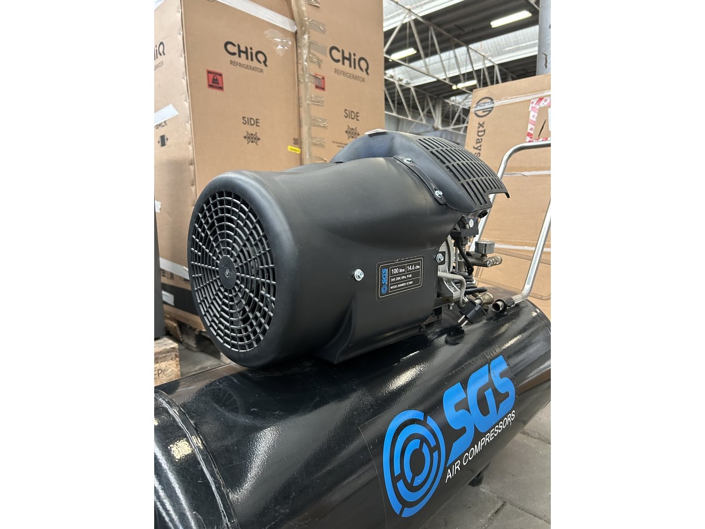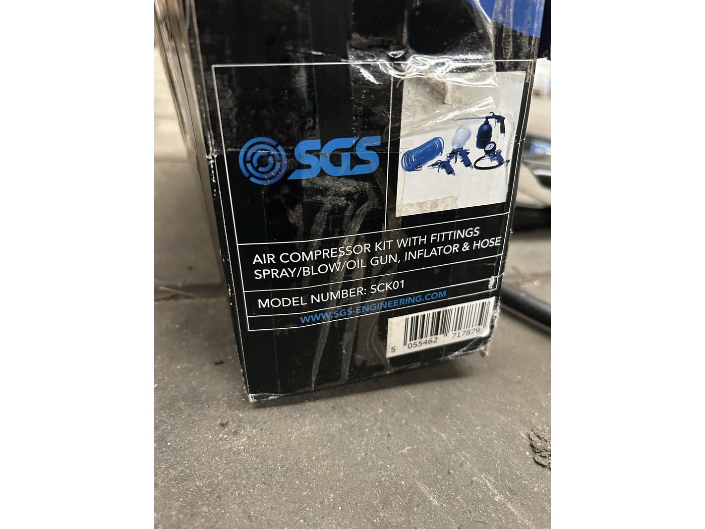 Merk: SGS Product: Luchtcompressor met accessoires Specificaties: Showroom model.