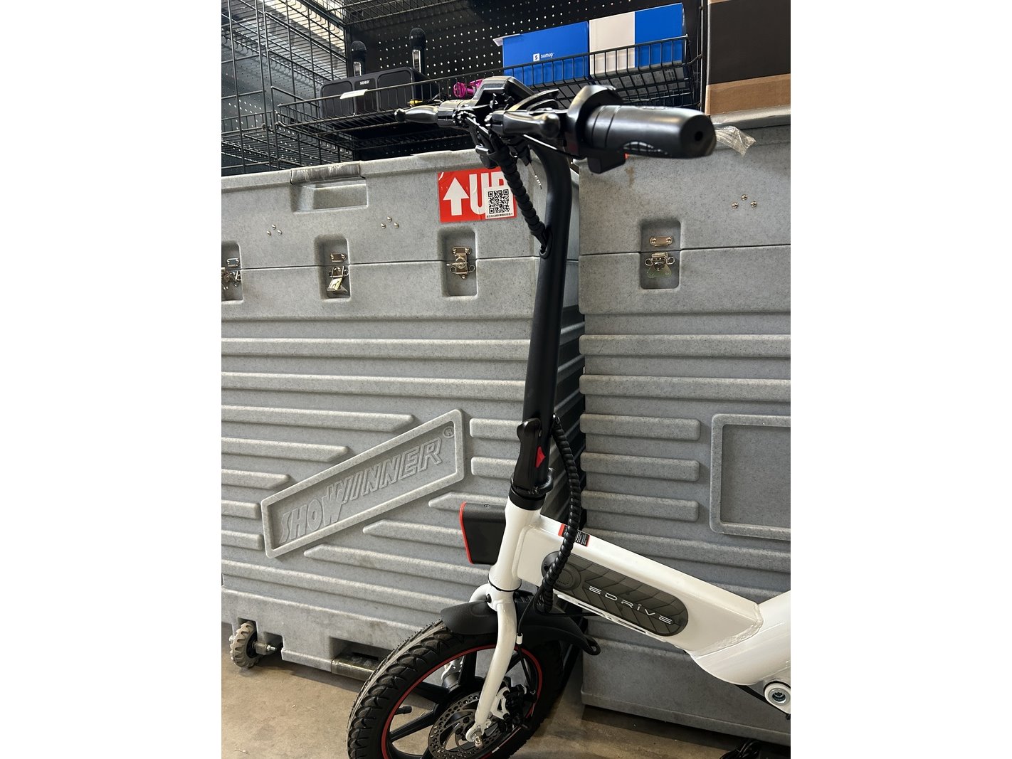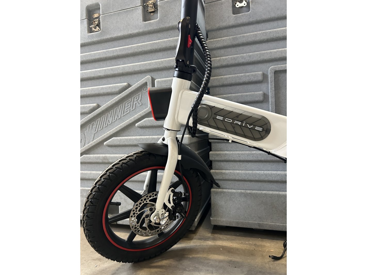 Merk: Edrive Product: Elektrische minibike inklapbaar Specificaties: Showroom model. Vermogen: 350 W Batterij: 10,0 Ah Topsnelheid: 25 km/u Actieradius: 35 km (in geassisteerde modus) Gewicht: 20.5 kg.