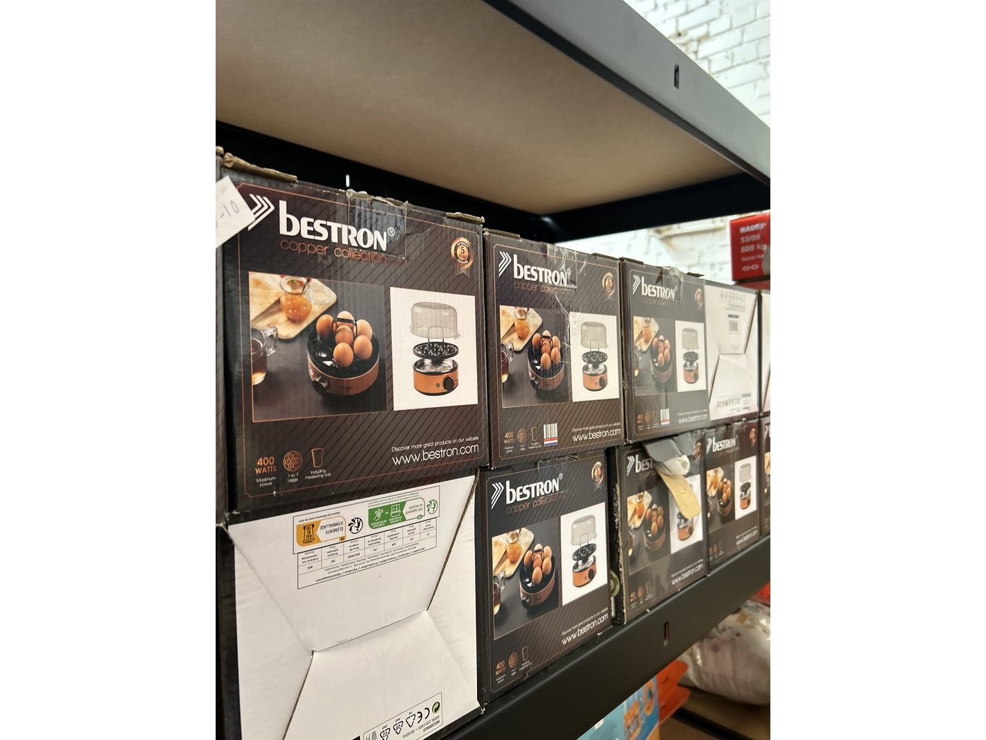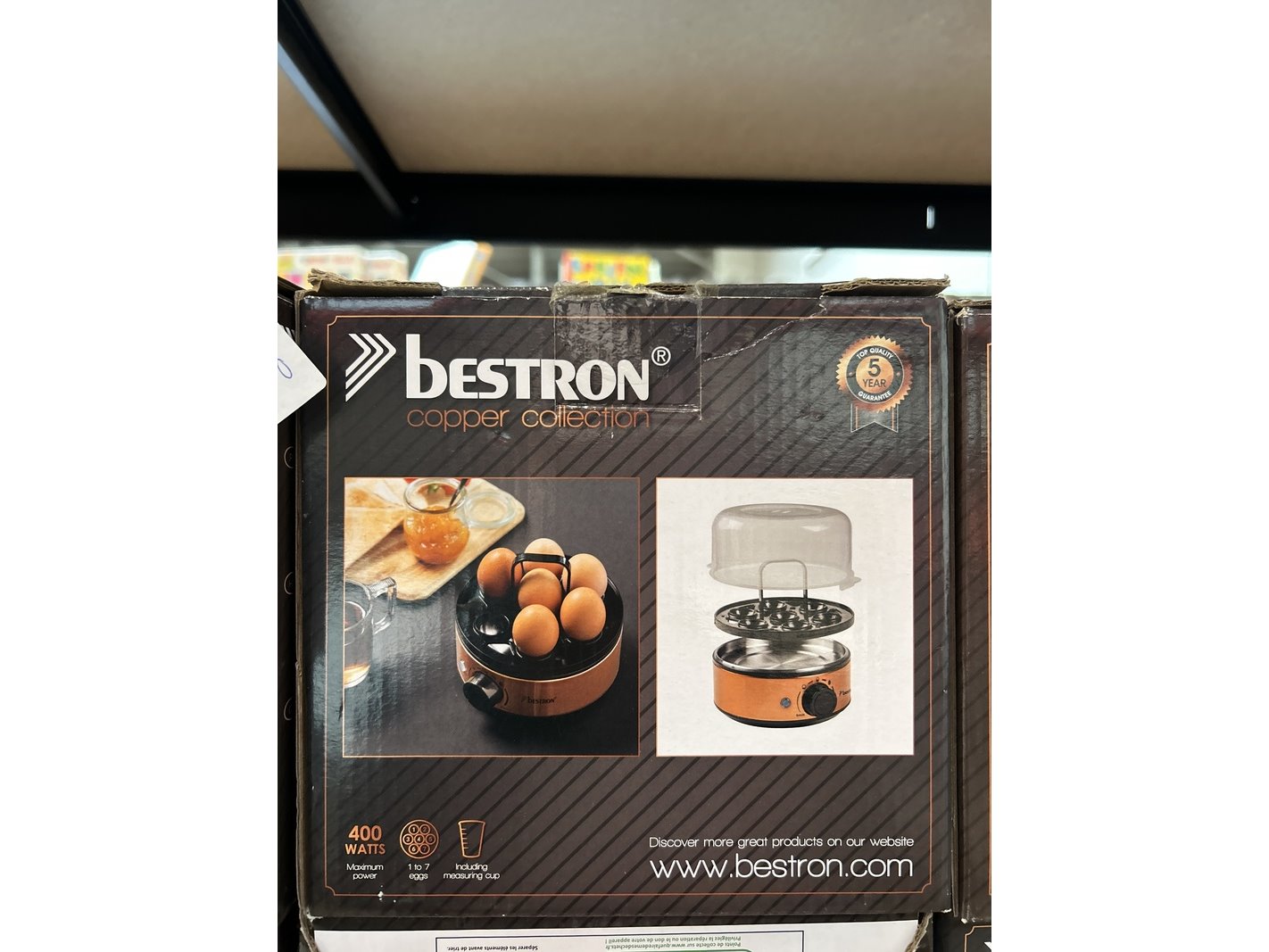 Merk: Bestron Product: Eierkoker Specificaties: Nieuw, showroom modellen, demo modellen en gebruikt. De werking en volledigheid van de items in deze kavel zijn onbekend.