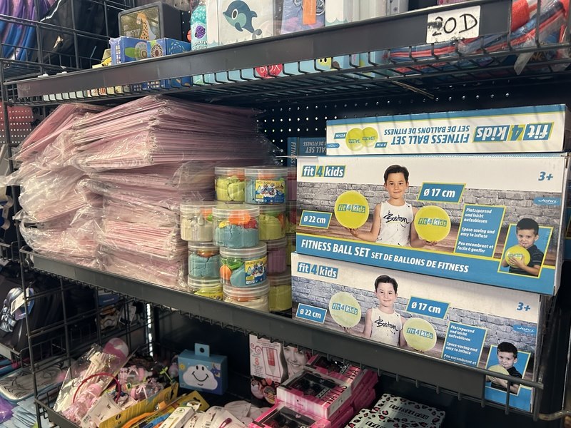 Merk: o.a. Fit4Kids Product: Divers kinderspeelgoed w.o. fitness bal, opbergmap Specificaties: Nieuw en showroom modellen.