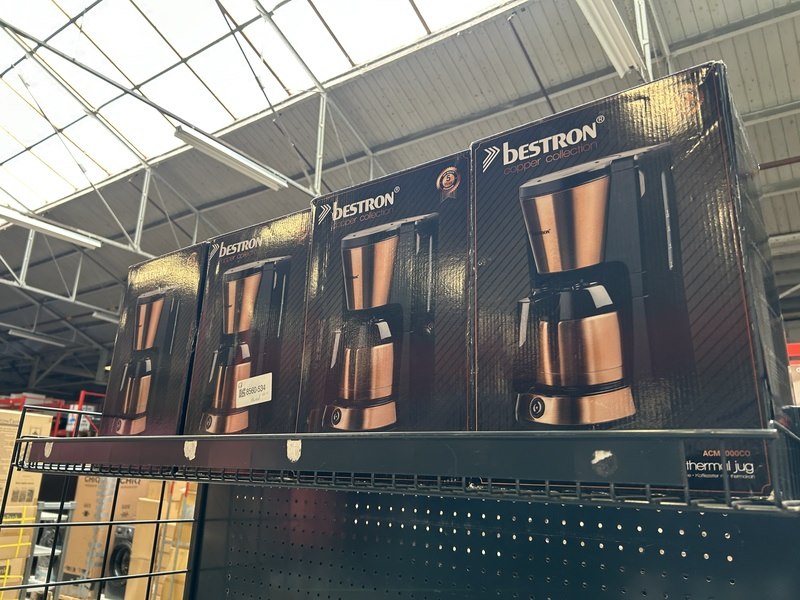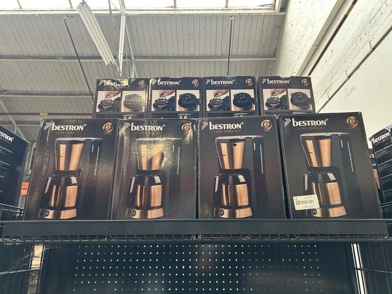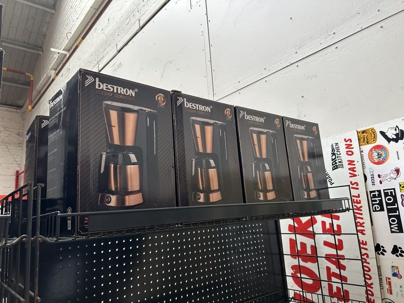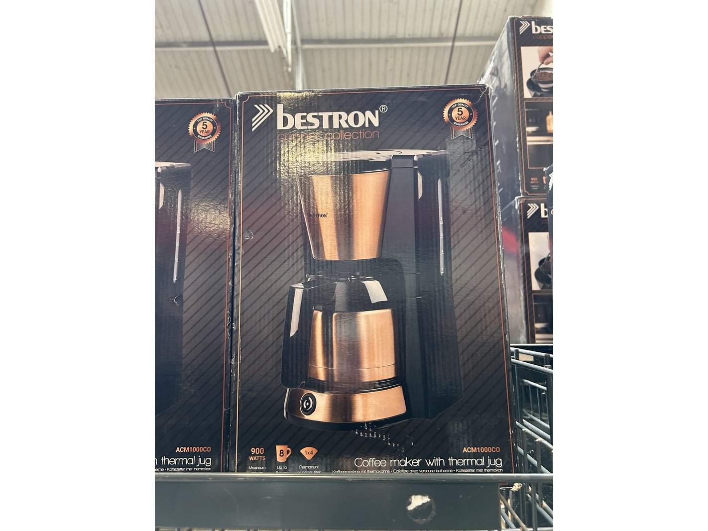 Merk: Bestron Product: Koffiezetapparaat Specificaties: Nieuw, showroom modellen en demo modellen. Werking onbekend. Verpakking beschadigd.