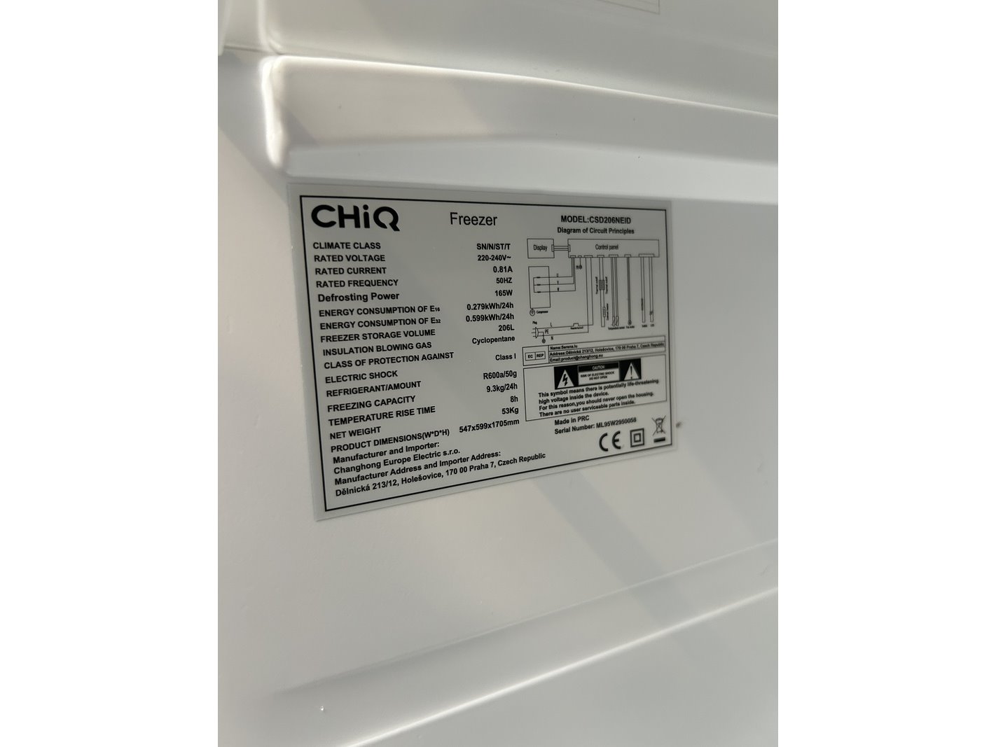 Merk: CHiQ Product: Vrijstaande vriezer 206 liter 6 lades Afmeting: 547x599x1705 mm Specificaties: Showroom model.