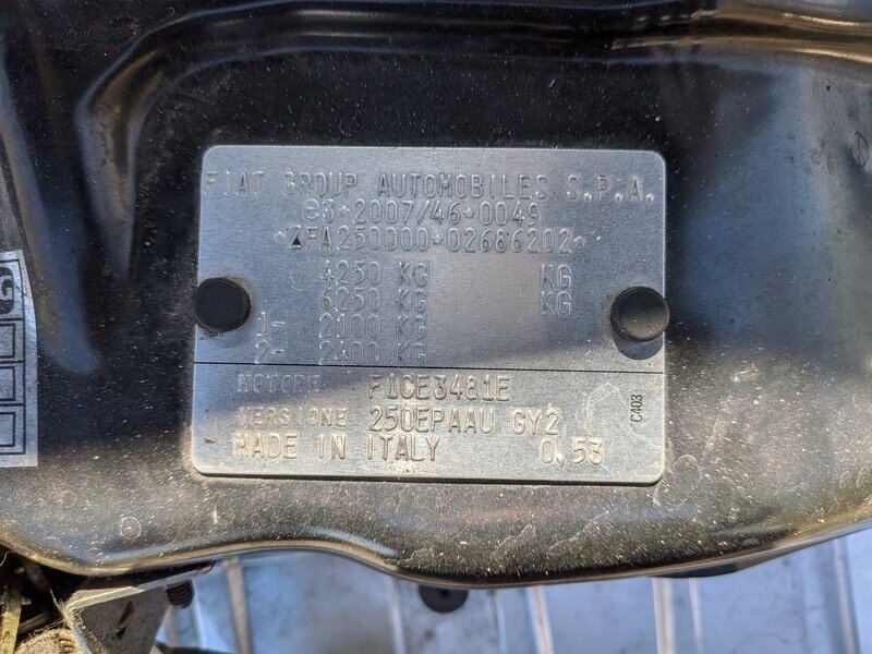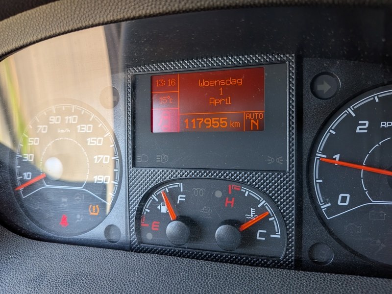 Merk: Fiat Product: Bedrijfsauto BouwJaar: 2014 Specificaties: Basiskenmerken Kenteken: 90-BFG-1 Chassisnummer (VIN) : ZFA25000002686202 Afgelezen tellerstand: 117.955 km Brandstof: diesel Aantal zitplaatsen: 2 Schakeling: automatisch Registratie Datum eerste toelating: 25 september 2014 APK vervaldatum: 5 oktober 2026 Motor Motorcode: F1CE3481 E Aantal cilinders: 4 Cilinderinhoud: 2.999 cm³ Max. vermogen: 130 kW / 177 pk Milieu Emissiecode: Euro 5 Technische gegevens (autolaadkraan) Max. hefvermogen: 25,2 kNm Bereik (hydraulische uitschuifdelen) : 3,4 m Bereik (handmatige uitschuifdelen) : 5,8 m Zwenkhoek: 330° Hoogte (opgevouwen stand) : 1.590 mm Breedte (opgevouwen stand) : 740 mm Gewicht ('standaard' kraan zonder steunpoten) : 265 kg Gewicht (steunpotenuitrusting) : 12 - 20 kg