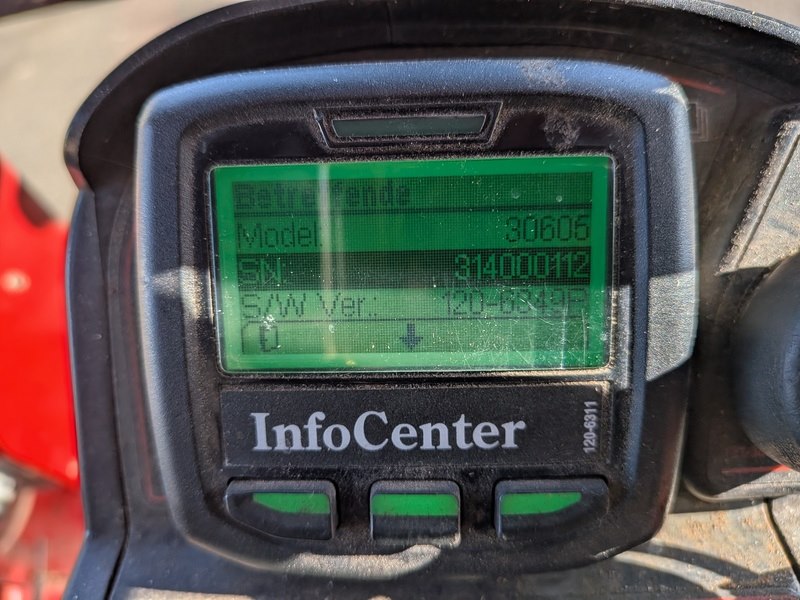 Merk: TORO Product: Cirkelmaaier BouwJaar: 2014 Specificaties: Basiskenmerken Kenteken: TDL-38-P Model: 30605 Serienummer: 314000112 Afgelezen tellerstand: 6.287 u. Brandstof: diesel Registratie Datum eerste toelating: 30 juni 2014 Motor Aantal cilinders: 4 Cilinderinhoud: 2.100 cm³ Vermogen: 41 kW / 55 pk Koppel: 169 Nm (2.000 rpm) Maaien Maaibreedte: ca. 3.350 mm Maaihoogtebereik: 25 - 127 mm (stappen van 13 mm) Maaisnelheid: 0 - 13,4 km/u De bovengenoemde specificaties kunnen mogelijk lichtelijk afwijken
