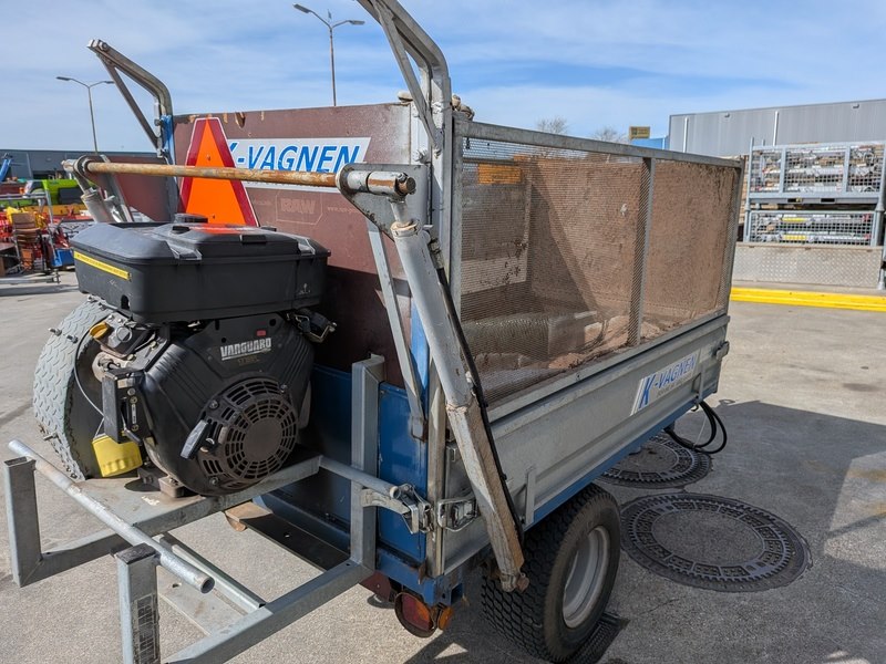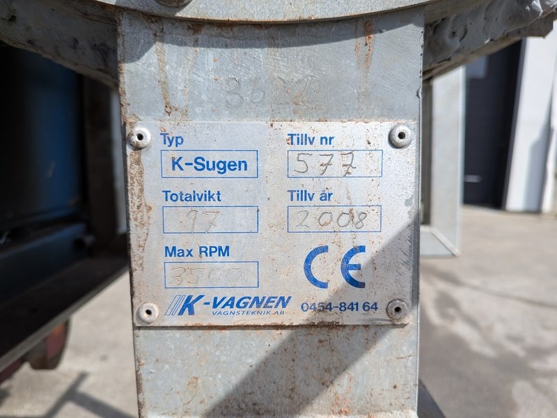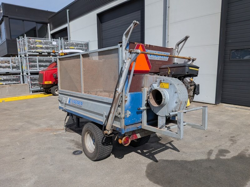 Merk: K-Vagnen Product: Bladzuigwagen BouwJaar: 2008 Specificaties: Basiskenmerken Serienummer: 362 Technische gegevens Max. snelheid: 30 km/u Max. laadvermogen: 1.000 kg Totaalgewicht: 1.240 kg
