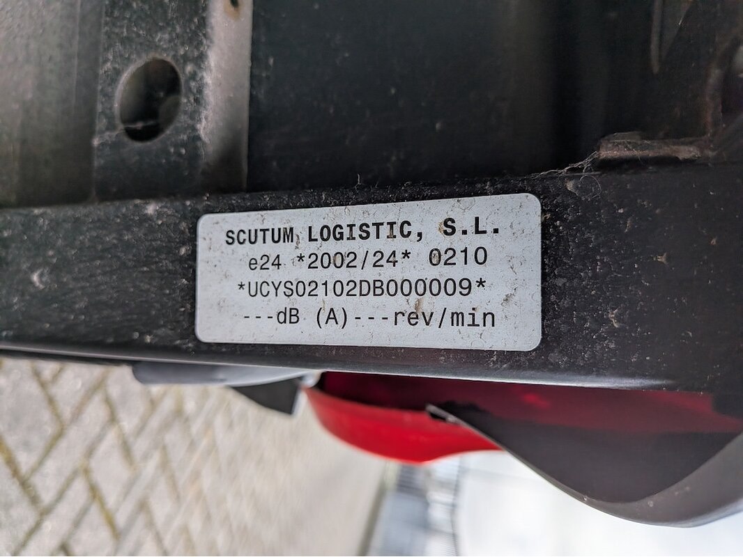 Merk: SCUTUM Product: e-scooter BouwJaar: 2018 Specificaties: Basiskenmerken Kenteken: DHZ-91-K Chassisnummer (VIN) : UCYS02102DB000009 Afgelezen tellerstand: 7.106 km Brandstof: elektrisch Registratie Datum eerste toelating: 13 april 2018 Motor Motorcode: PE134835A (MARK Continue vermogen: 2 kW Prestaties Max. constructiesnelheid: 25 km/h