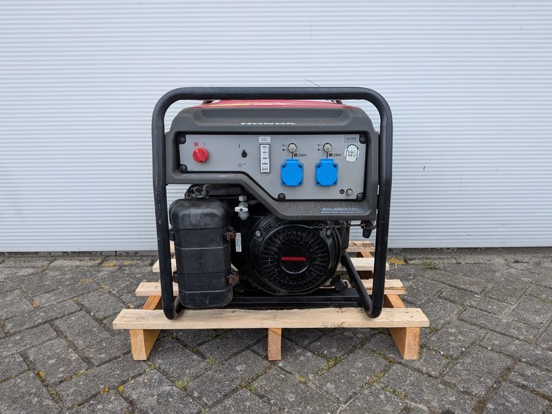 Merk: HONDA Product: Benzine aggregaat BouwJaar: 2012 Specificaties: Technische gegevens Max. vermogen (230V) : 4.500 W Continue vermogen (230V) : 4.000 W Stroomsterkte: 17,4 A Motor: HONDA GX390T2, 1 cilinder, 4-takt Motorsnelheid: 3.000 rpm Tankinhoud: 24 liter Bedrijfsduur: 9,5 uur Afmetingen (LxBxH) : 680 x 530 x 570 mm Gewicht: 79 kg