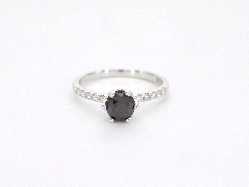 Product: Witgouden ring met één briljant geslepen zwarte diamant en witte diamanten Specificaties: Diamant: Natuurlijk Aantal: 1 stuk Slijpvorm: Briljant geslepen Gewicht (carat): 1.00 carat Kleur: Zwart (enhanced) Zuiverheid: Opaak (enhanced) Slijpkwaliteit: Mooi Diamant (secundair): Witte diamanten Aantal diamanten: 10 stuks Slijpvorm: Briljant geslepen Gewicht (carat): 0.15 carat Kleur: F-G Zuiverheid: SI-P Juweel: Ring Gewicht: 2.5 gram Ringmaat (op maat gemaakt*): 54 (17.25 mm) Materiaal: 14 karaat (585) Conditie: Nieuw Verpakking: Luxe sieradendoos Toelichting: De kwaliteit is overgenomen van het rapport behorend bij item. De waardebepaling is een beoordeling van een gecertificeerde diamantair, gebaseerd op consumentenprijzen. Consumentenprijs: € 2.520,- *Ringen kunnen als het mogelijk is op maat gemaakt worden.