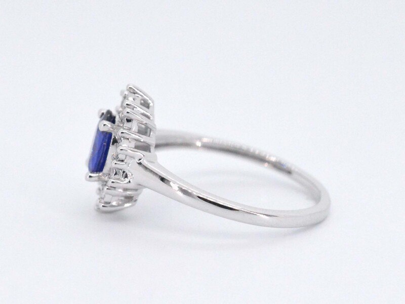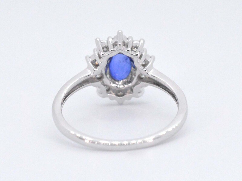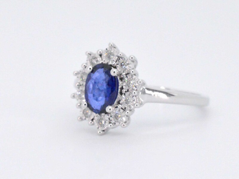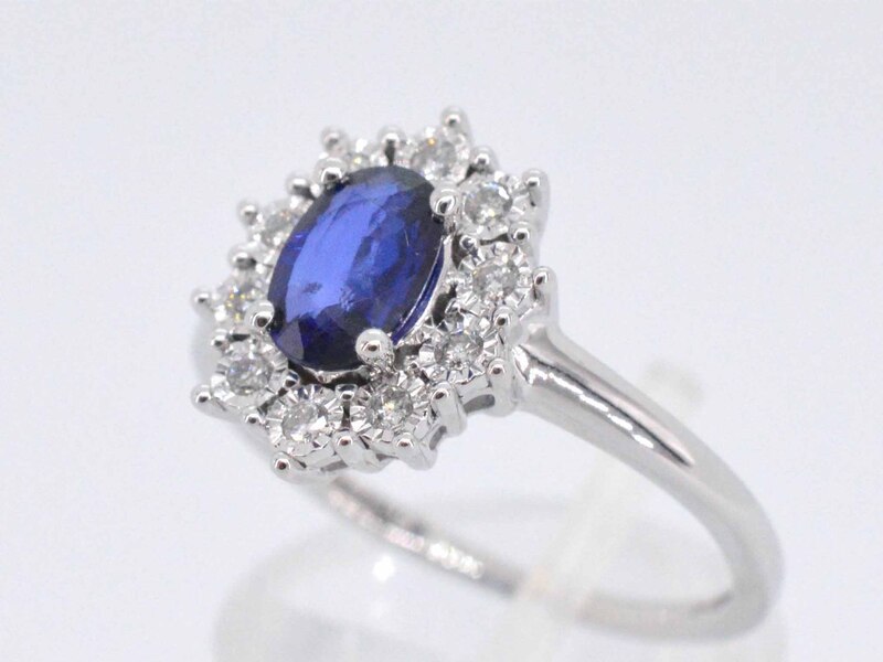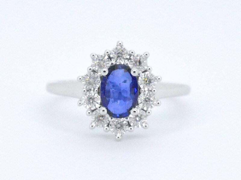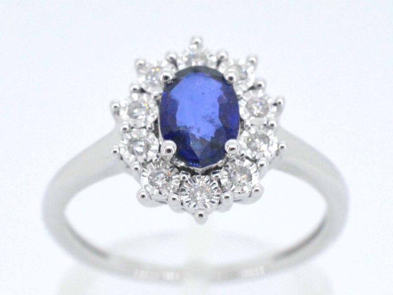 Product: Witgouden entourage ring met saffier en briljanten Specificaties: Diamant: Natuurlijk Slijpvorm: Briljant geslepen Gewicht (carat): 0.15 carat Kleur: F-G Zuiverheid: SI-P Slijpkwaliteit: Zeer mooi Edelsteen: Saffier Slijpvorm: Druppel vorm Gewicht (carat): 1.00 carat Juweel: Ring Gewicht: 2.9 gram Ringmaat (op maat gemaakt*): 54 (17.25 mm) Materiaal: 14 karaat (585) Conditie: Nieuw Verpakking: Luxe sieradendoos Toelichting: De kwaliteit is overgenomen van het rapport behorend bij item. De waardebepaling is een beoordeling van een gecertificeerde diamantair, gebaseerd op consumentenprijzen. Consumentenprijs: € 2.538,- *Ringen kunnen als het mogelijk is op maat gemaakt worden.
