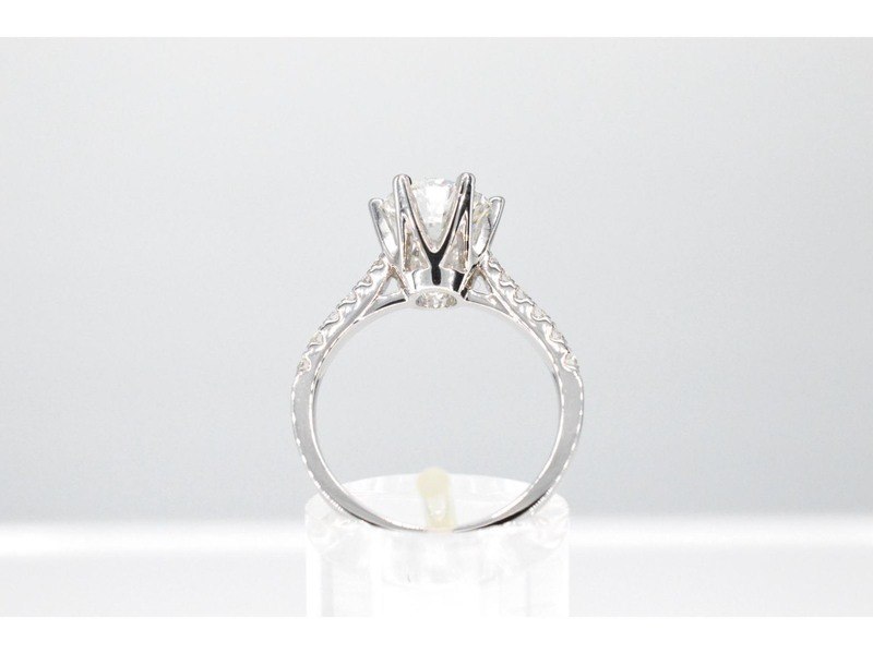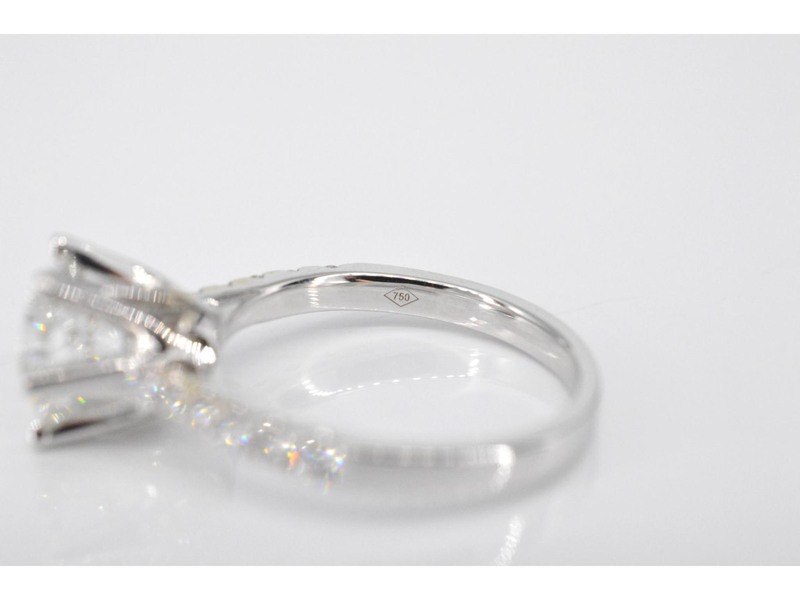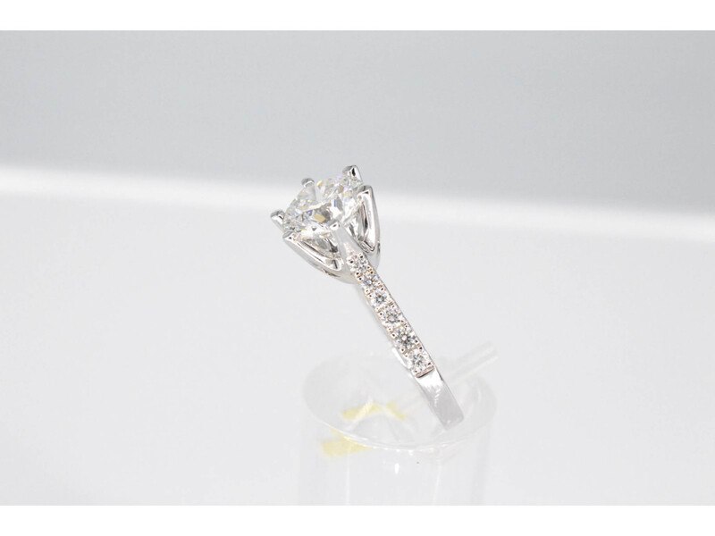 Product: Witgouden ring met een diamant van 1.00 carat Specificaties: Diamant: Natuurlijk Aantal: 1 stuk Slijpvorm: Briljant geslepen Gewicht (carat): 1.00 carat Kleur: F Zuiverheid: SI2 Slijpkwaliteit: Excellent Diamant (secundair): Kleine diamanten Slijpvorm: Briljant geslepen Gewicht (carat): 0.30 carat totaal Kleur: F-G Zuiverheid: VS Juweel: Ring Gewicht: 3.5 gram Ringmaat (op maat gemaakt*): 53 (17 mm) Materiaal: 18K goud (750) Conditie: Nieuw Verpakking: Luxe sieradendoos Toelichting: De kwaliteit is overgenomen van het rapport behorend bij item. De waardebepaling is een beoordeling van een gecertificeerde diamantair, gebaseerd op consumentenprijzen. Consumentenprijs: € 15.200,- *Ringen kunnen als het mogelijk is op maat gemaakt worden.