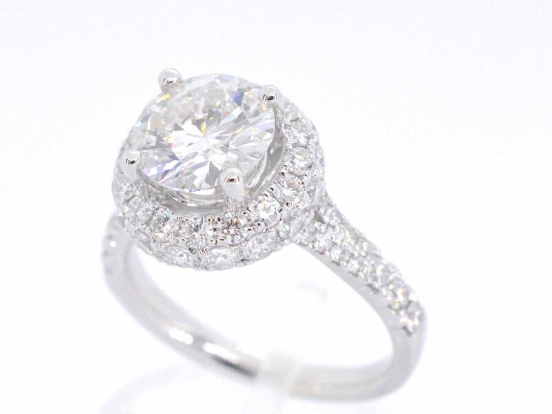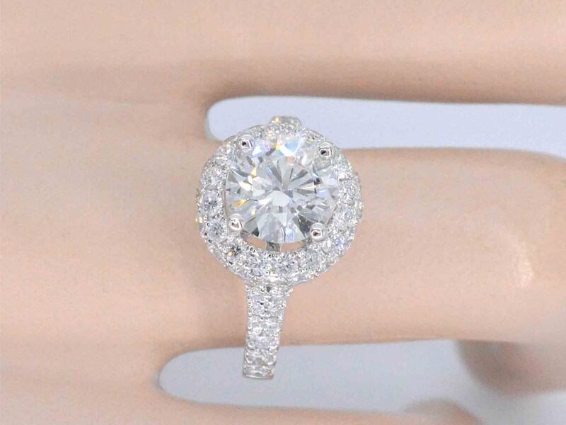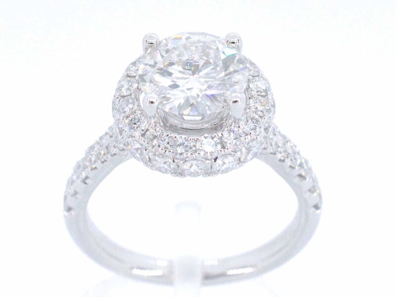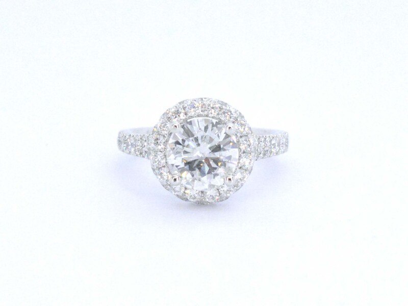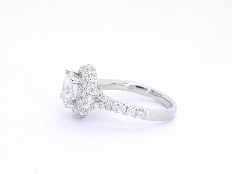 Product: Witgouden entourage ring met een briljant geslepen diamant 2.00 carat Specificaties: Diamant: Natuurlijk Aantal: 1 stuk Slijpvorm: Briljant geslepen Gewicht (carat): 2.00 carat Kleur: G Zuiverheid: SI2 Slijpkwaliteit: Zeer mooi Diamant (secundair): Kleine diamanten Slijpvorm: Briljant geslepen Gewicht (carat): 1.00 carat Kleur: F-G Zuiverheid: VS Slijpkwaliteit: Zeer mooi Juweel: Ring Gewicht: 5 gram Ringmaat (op maat gemaakt*): 53 (17 mm) Materiaal: 18K goud (750) Conditie: Nieuw Verpakking: Luxe sieradendoos Toelichting: De kwaliteit is overgenomen van het rapport behorend bij item. De waardebepaling is een beoordeling van een gecertificeerde diamantair, gebaseerd op consumentenprijzen. Consumentenprijs: € 56.875,- *Ringen kunnen als het mogelijk is op maat gemaakt worden.