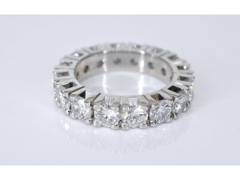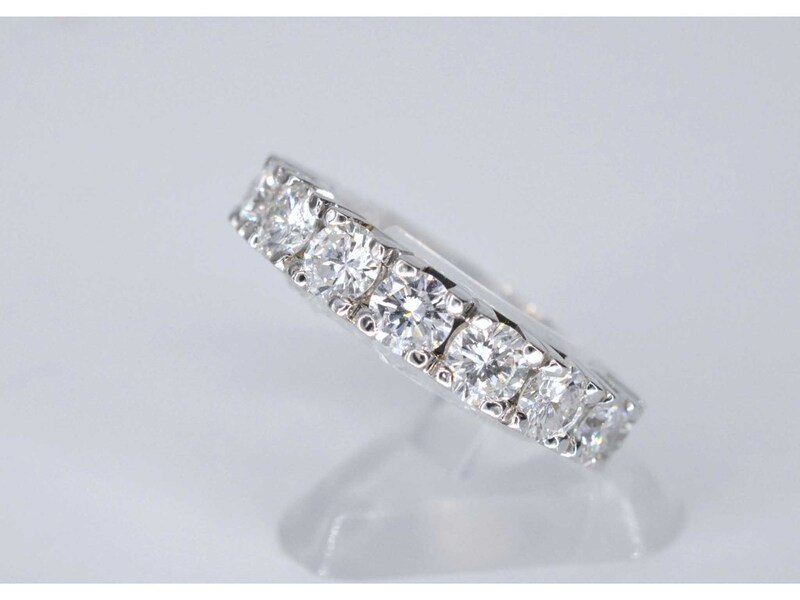 Product: Witgouden alliance ring met grote diamanten Specificaties: Diamant: Natuurlijk Slijpvorm: Briljant geslepen Gewicht (carat): 4.50 carat Kleur: F-G Zuiverheid: VS Slijpkwaliteit: Zeer mooi Juweel: Ring Gewicht: 8 gram Ringmaat (op maat gemaakt*): 53 (17 mm) Materiaal: 18K goud (750) Conditie: Nieuw Verpakking: Luxe sieradendoos Toelichting: De kwaliteit is overgenomen van het rapport behorend bij item. De waardebepaling is een beoordeling van een gecertificeerde diamantair, gebaseerd op consumentenprijzen. Consumentenprijs: € 27.563,- *Ringen kunnen als het mogelijk is op maat gemaakt worden.