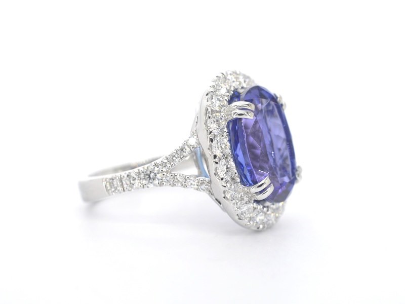 Product: Witgouden entourage ring met een tanzaniet van 7.00 carat Specificaties: Diamant: Natuurlijk Aantal: 40 stuks Slijpvorm: Briljant geslepen Gewicht (carat): 1.30 carat Kleur: F Zuiverheid: VS Slijpkwaliteit: Zeer mooi Edelsteen: Tanzaniet Aantal: 1 stuk Slijpvorm: Ovaal geslepen Gewicht (carat): 7.01 carat Kleur: Royal blue Zuiverheid: Zeer hoge zuiverheidsgraad Kwaliteit: AAA+ (zeer hoge kwaliteit) Juweel: Ring Gewicht: 7.9 gram Ringmaat (op maat gemaakt*): 53 (17 mm) Materiaal: 18K goud (750) Conditie: Nieuw Verpakking: Luxe sieradendoos Toelichting: De kwaliteit is overgenomen van het rapport behorend bij item. De waardebepaling is een beoordeling van een gecertificeerde diamantair, gebaseerd op consumentenprijzen. Consumentenprijs: € 24.000,- *Ringen kunnen als het mogelijk is op maat gemaakt worden.
