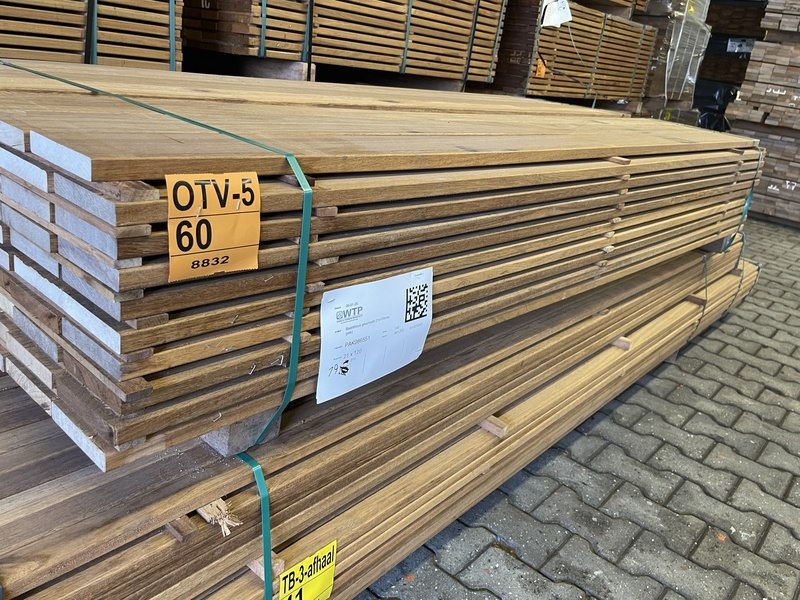 Ca. 79x guyana teak planken geschaafd, 21x120mm, lengte 215cm