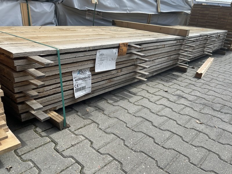 Ca. 65x douglas planken fijnbezaagd, 22x200mm, lengte 400cm