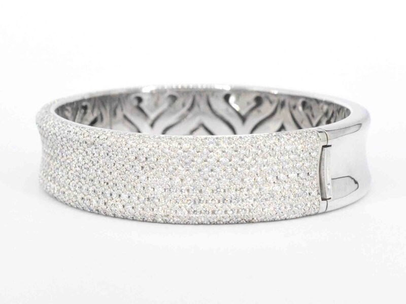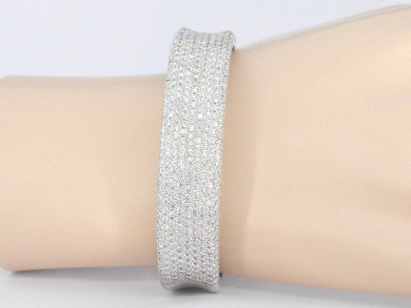 Product: Gouden armband met diamanten Specificaties: Diamant: Natuurlijk Aantal: 500 stuks Slijpvorm: Briljant geslepen Gewicht (carat): 14.00 carat Kleur: D-E Zuiverheid: VVS Slijpkwaliteit: Excellent Juweel: Armband Gewicht: 80.7 gram Afmetingen/lengte: Diameter: 62 cm Materiaal: 18K goud (750) Conditie: Zo goed als nieuw Verpakking: Luxe sieradendoos Toelichting: De kwaliteit is overgenomen van het rapport behorend bij item. De waardebepaling is een beoordeling van een gecertificeerde diamantair, gebaseerd op consumentenprijzen. Consumentenprijs: € 93.000,-