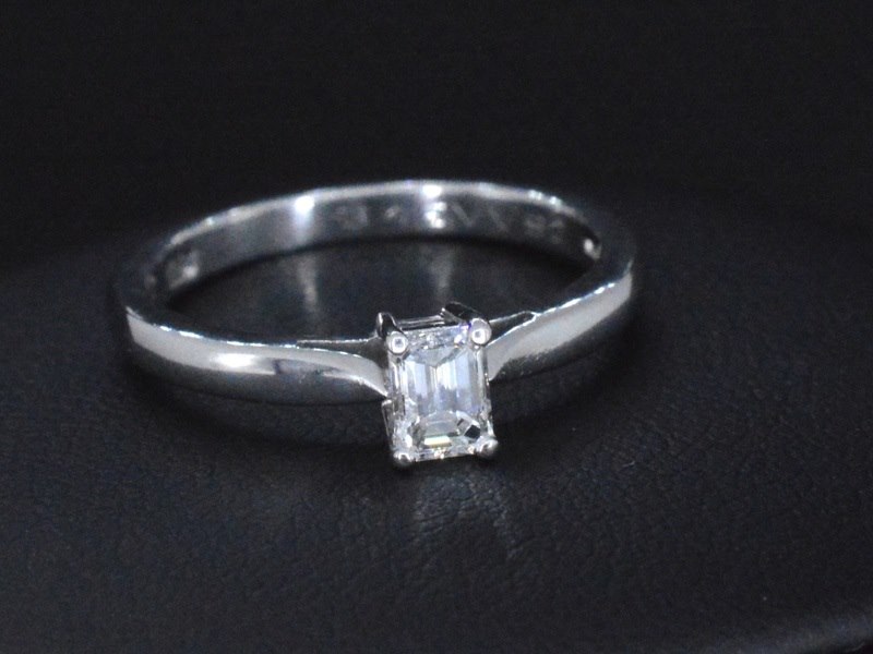 Product: Platina ring met diamant en GIA certificaat Specificaties: Diamant: Natuurlijk Aantal: 1 stuk Slijpvorm: baguette geslepen Gewicht (carat): 0.34 carat Kleur: E Zuiverheid: VVS2 Slijpkwaliteit: Zeer mooi Certificaat: GIA Certificaat nummer: 14094497 Juweel: Ring Gewicht: 4 gram Ringmaat (op maat gemaakt*): 52.25 (16.75 mm) Materiaal: Platina Conditie: Zo goed als nieuw Verpakking: Luxe sieradendoos Toelichting: De kwaliteit is overgenomen van het rapport behorend bij item. De waardebepaling is een beoordeling van een gecertificeerde diamantair, gebaseerd op consumentenprijzen. Consumentenprijs: € 6.965,- *Ringen kunnen als het mogelijk is op maat gemaakt worden