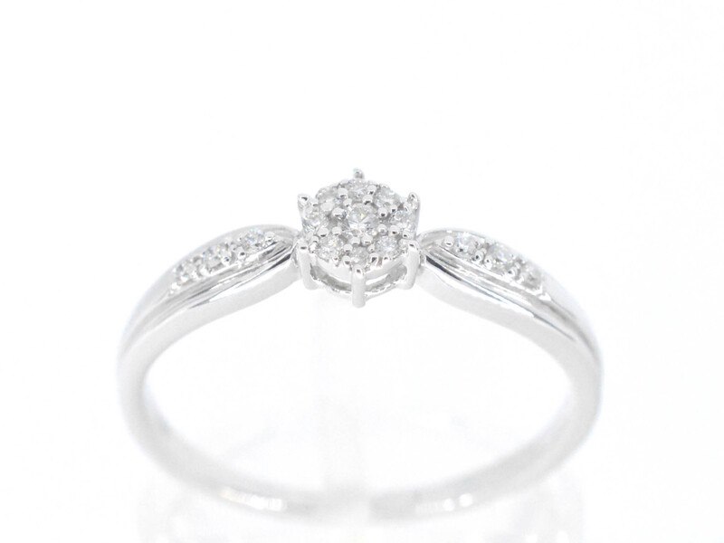 Product: Witgouden ring met diamanten Specificaties: Diamant: Natuurlijk Aantal: 15 stuks Slijpvorm: Briljant geslepen Gewicht (carat): 0.12 carat Kleur: F-G Zuiverheid: SI-P Slijpkwaliteit: Zeer mooi Juweel: Ring Gewicht: 2.1 gram Ringmaat (op maat gemaakt*): 53 (17 mm) Materiaal: 14 karaat (585) Conditie: Nieuw Verpakking: Luxe sieradendoos Toelichting: De kwaliteit is overgenomen van het rapport behorend bij item. De waardebepaling is een beoordeling van een gecertificeerde diamantair, gebaseerd op consumentenprijzen. Consumentenprijs: € 1.768,- *Ringen kunnen als het mogelijk is op maat gemaakt worden