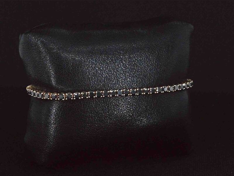 Product: Rosegouden armband met 7.00 carat zwarte Briljant geslepen diamanten Specificaties: Diamant: Natuurlijk Aantal: 67 stuks Slijpvorm: Briljant geslepen Gewicht (carat): 7.00 carat Kleur: Zwart (enhanced) Slijpkwaliteit: Zeer mooi Juweel: Armband Gewicht: 7 gram Afmetingen/lengte: 18 cm Materiaal: 14k goud (585) Conditie: Nieuw Verpakking: Luxe sieradendoos Toelichting: De kwaliteit is overgenomen van het rapport behorend bij item. De waardebepaling is een beoordeling van een gecertificeerde diamantair, gebaseerd op consumentenprijzen. Consumentenprijs: € 7.018,-