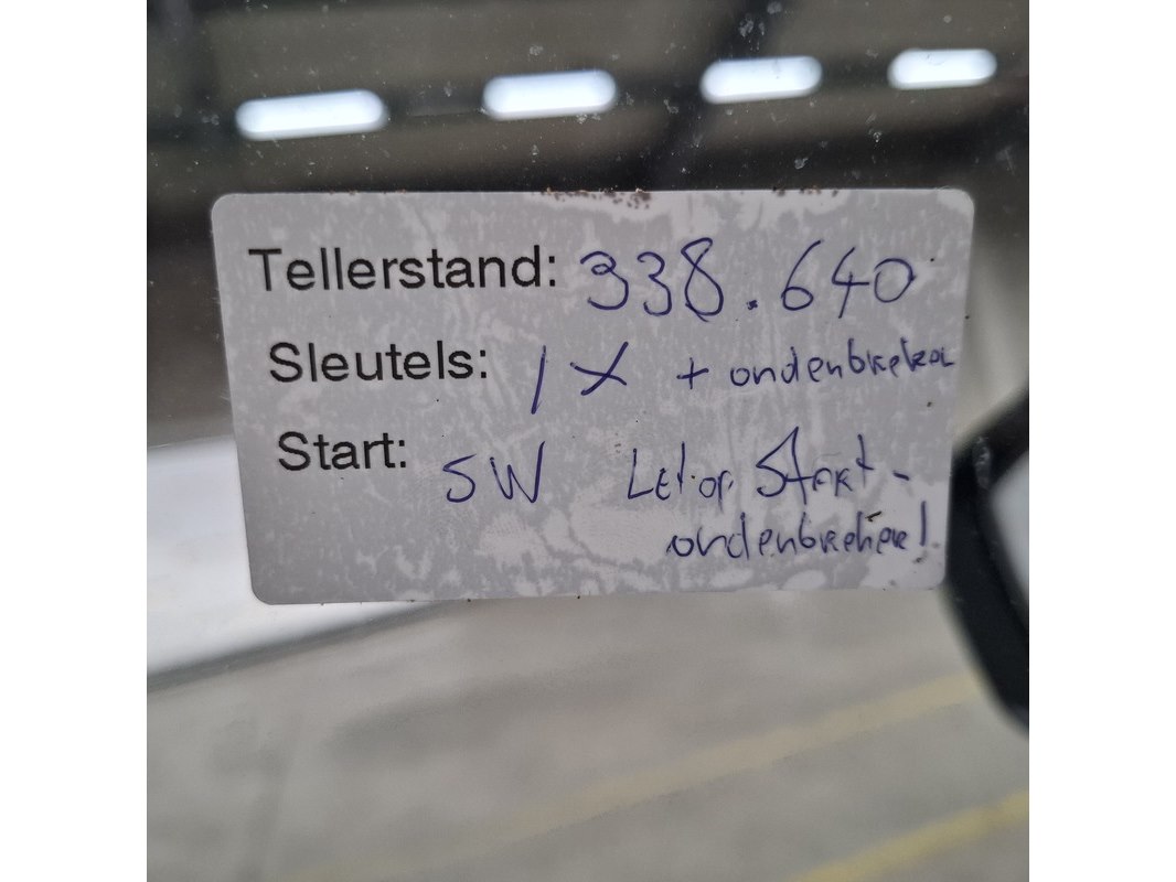 Merk: Skoda Product: Personenauto Conditie: gebruikt Specificaties: Kenteken: Niet geregistreerd Eerste toelating nationaal: Niet geregistreerd APK vervaldatum: Niet van toepassing Brandstof: Diesel Transmissie: Automaat Afgelezen tellerstand: 338.640 Aantal sleutels: 1 + 1 handzender alarm VIN nummer: TMBJ9NP8G7063683 Start: ja Opties e.d. Elektrische ramen en spiegels Airconditioning Cruisecontrol Navigatie Radio met display Parkeersensoren Waargenomen gebreken Gebruikssporen rondom Het Certificaat van Overeenstemming (CVO) is aanwezig bij het voertuig.