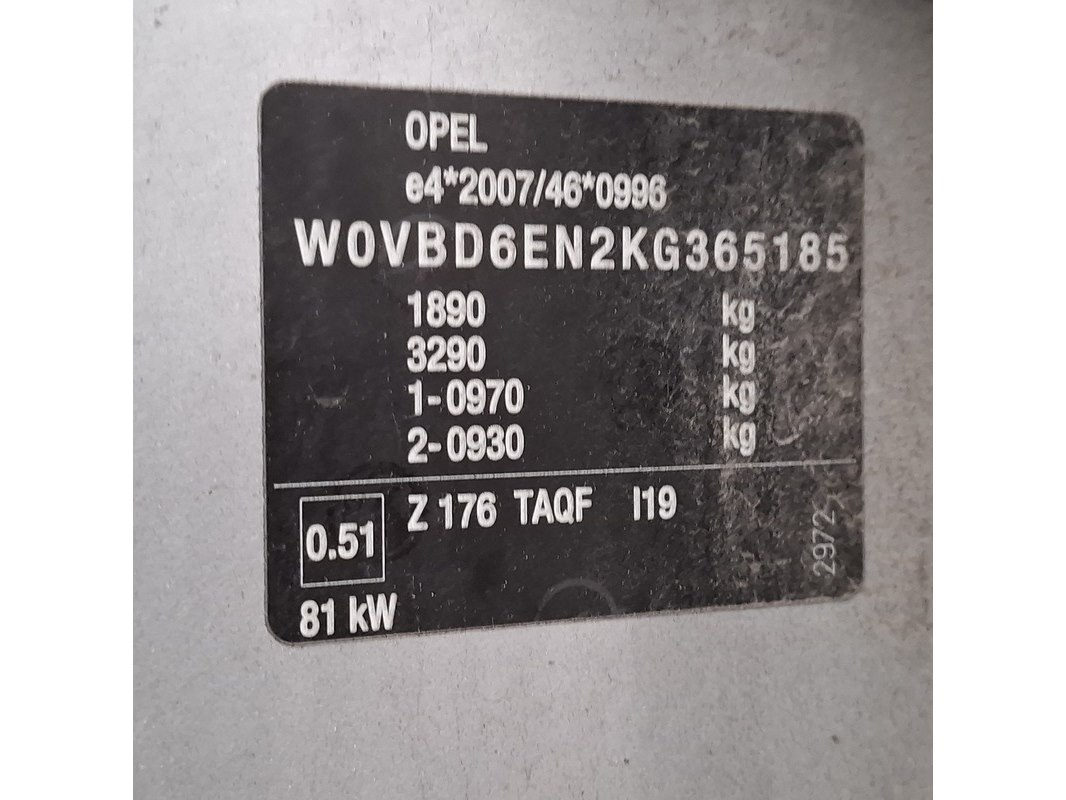 Merk: Opel Product: Personenauto Conditie: gebruikt Specificaties: Kenteken: Niet geregistreerd Eerste toelating nationaal: Niet geregistreerd APK vervaldatum: Niet van toepassing Brandstof: Diesel Transmissie: Handgeschakeld, 6 versnellingen Afgelezen tellerstand: 238.803 Aantal sleutels: 3 VIN nummer: W0VBD6EN2KG365185 Start: ja Opties e.d. Elektrische ramen en spiegels Airconditioning Cruisecontrol Navigatie Radio met display Parkeersensoren Waargenomen gebreken Schaafplek voorbumper rechts. Gebruikssporen rondom