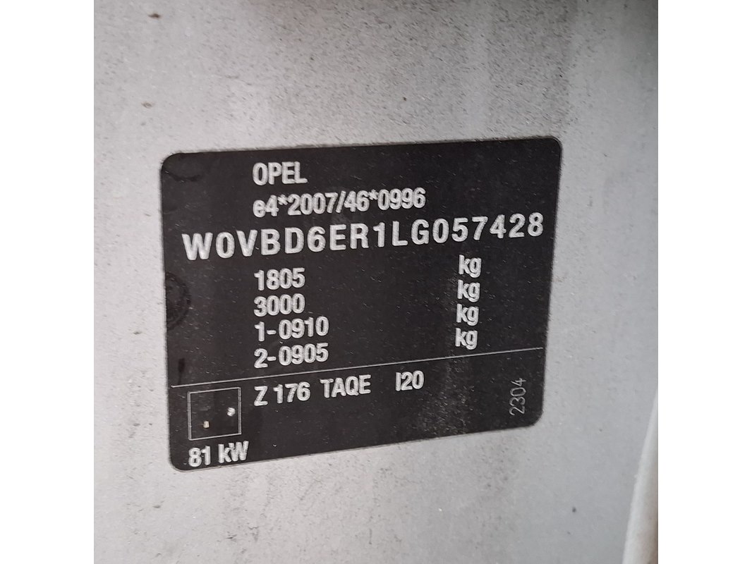 Merk: Opel Product: Personenauto Conditie: Schade Specificaties: Kenteken: Niet geregistreerd Eerste toelating nationaal: Niet geregistreerd APK vervaldatum: Niet van toepassing Brandstof: Benzine Transmissie: Handgeschakeld, 6 versnellingen Afgelezen tellerstand: 129.378 Aantal sleutels: VIN nummer: W0VBD6ER1LG057428 Start: Nee. De motor is deels gedemonteerd, o.a. nokkenassen gedemonteerd. Volgens opgave motor defect. Opties e.d. Elektrische ramen en spiegels Airconditioning Cruisecontrol Navigatie Radio met display Parkeersensoren Waargenomen gebreken Gebruikssporen rondom. De motor is deels gedemonteerd, o.a. nokkenassen gedemonteerd. Volgens opgave motor defect. DOM 51 van toepassing. Het Certificaat van Overeenstemming (CVO) is aanwezig bij het voertuig.