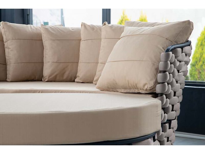 Product: Loungebed Kleur: wit, beige Materiaal: aluminium frame, stof, nylon Afmeting: 215x210x98 Conditie: nieuw Specificaties: 2 delig ook apart te gebruiken