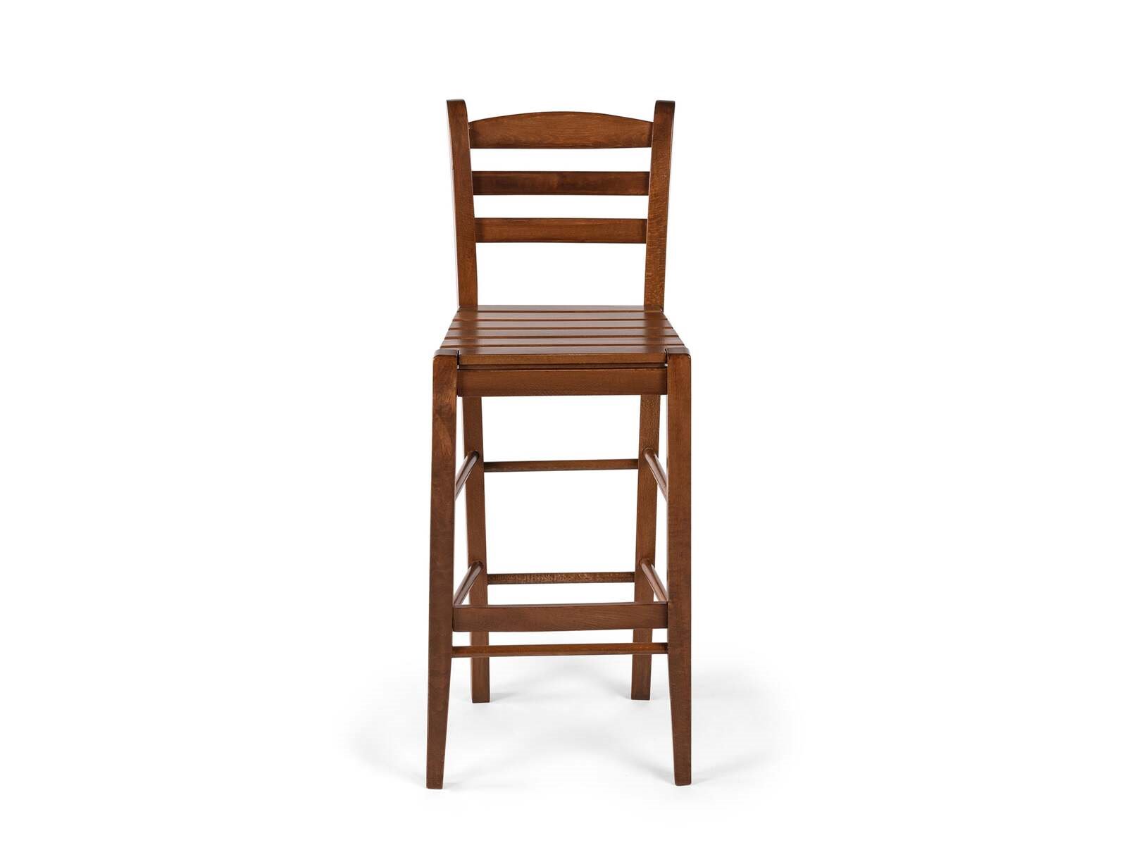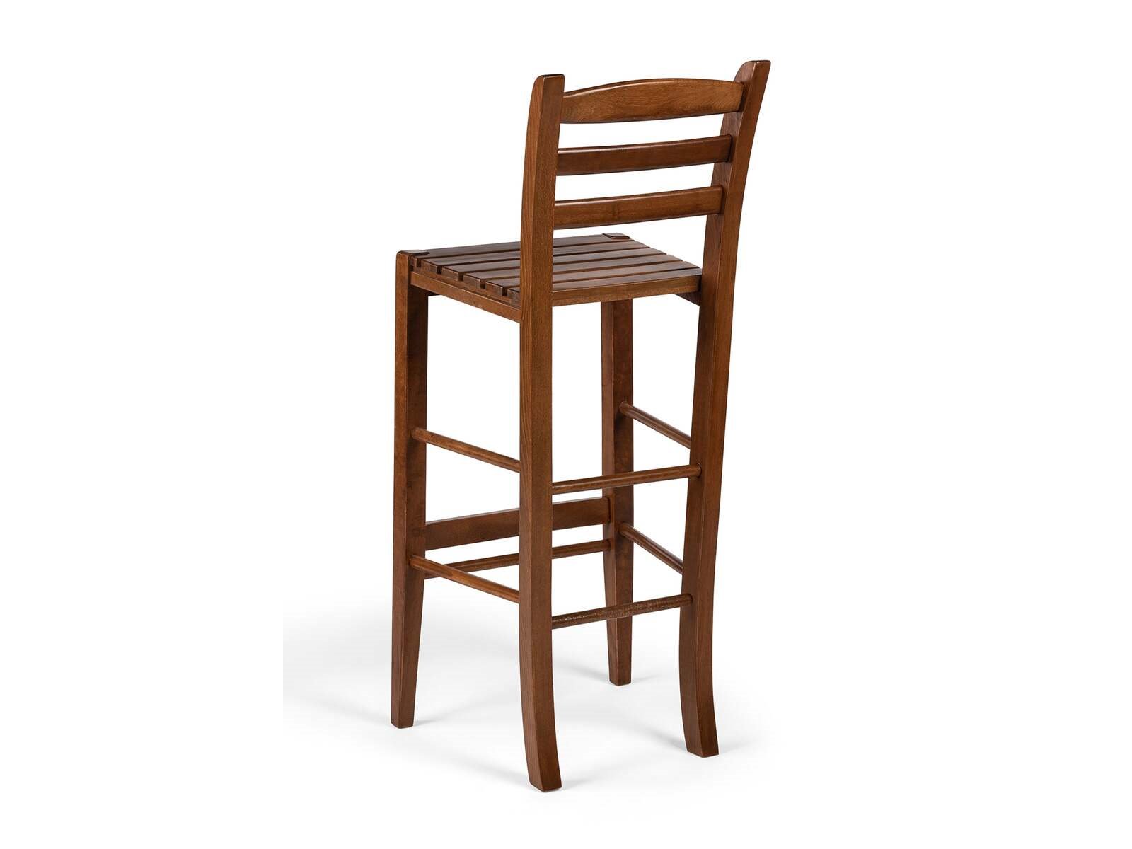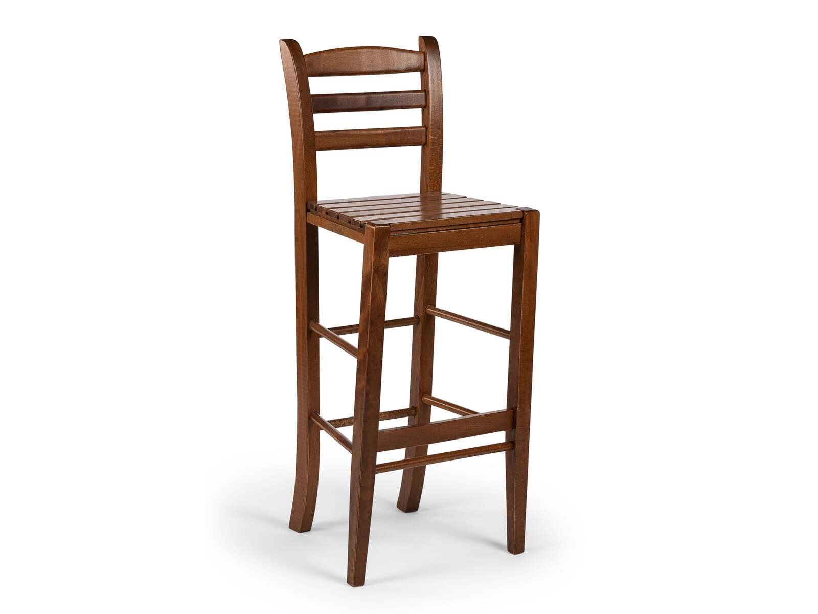 Product: Barstoel Kleur: walnoot Materiaal: haagbeukhout Afmeting: 42x40x110 Conditie: nieuw Specificaties: waterbestendig