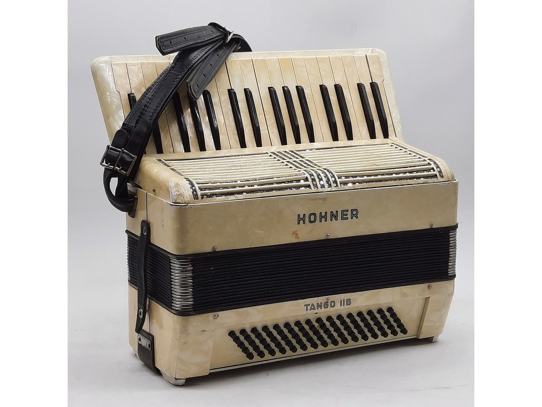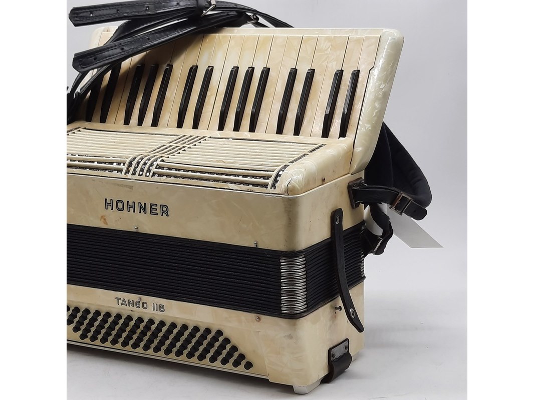 Merk: Hohner Product: Accordeon Conditie: gebruikt Specificaties: Diverse scheuren in plastic / beschadigingen