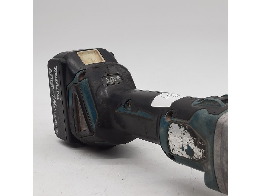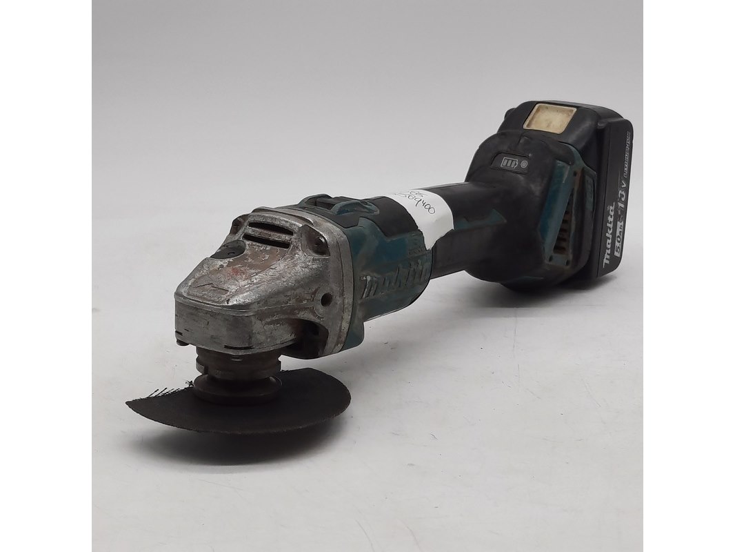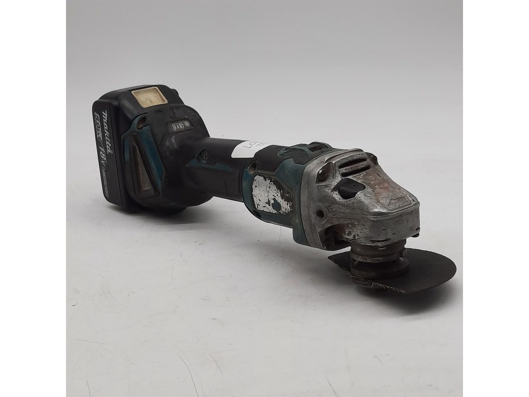 Merk: Makita Product: Accu haakse slijper BouwJaar: 2018 Conditie: gebruikt Specificaties: Inclusief 1x accu (18V 5.0 Ah) Exclusief acculader