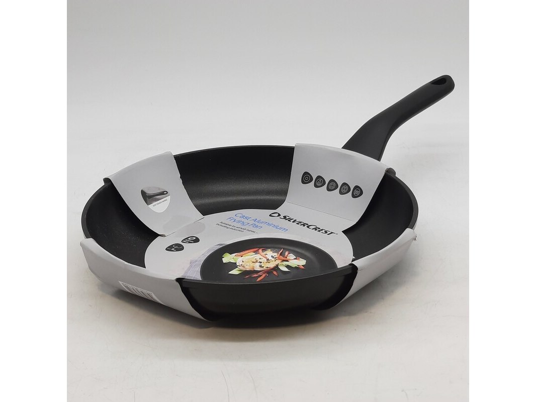 Merk: Silvercrest Product: Aluminium pan Afmeting: Doorsnee ca. 28 cm. Specificaties: Verpakking beschadigd