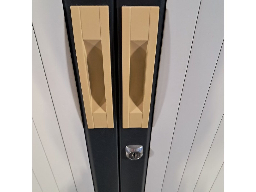 Merk: Ronal Product: Jaloeziekast Afmeting: Hxbxd ca. 198x120x45 cm Conditie: Gebruikt Specificaties: Diverse gebruikssporen. Technische staat en compleetheid onbekend.