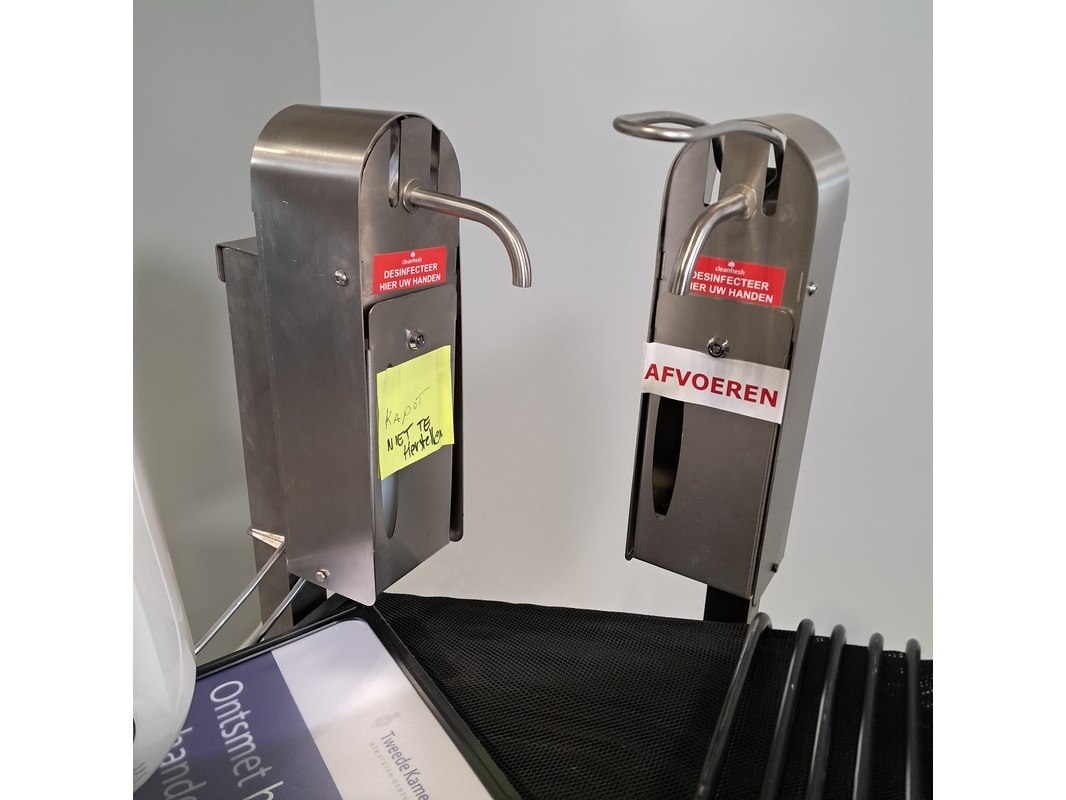 5x desinfectiezuil, 6x afvalbak en 10x papierbak, o.a. ecosmart