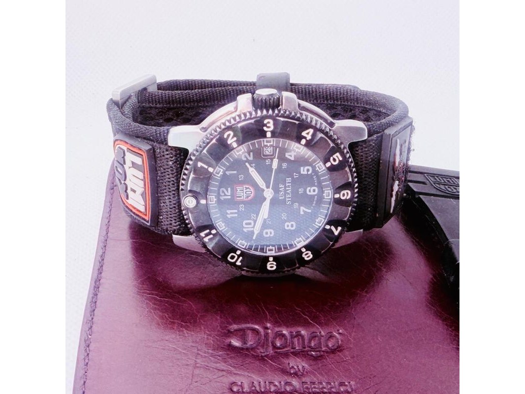 Product: Luminox Nighthawk USAF Stealth pilotenhorloge F-117 Afmeting: 38mm Conditie: Gebruikt Specificaties: Merk: Luminox. Model: Nighthawk USAF Stealth - F-117. Inclusief 2 complete originele banden. Inclusief lederen carry case. Gebruikt, dit betreft een tweedehands product die gebruikssporen kan hebben, zie foto's.
