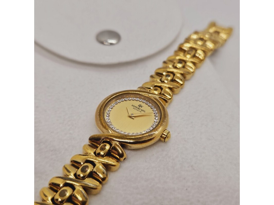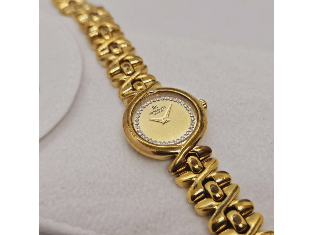 Raymond weil 9827 goldplated dameshorloge met steentjes