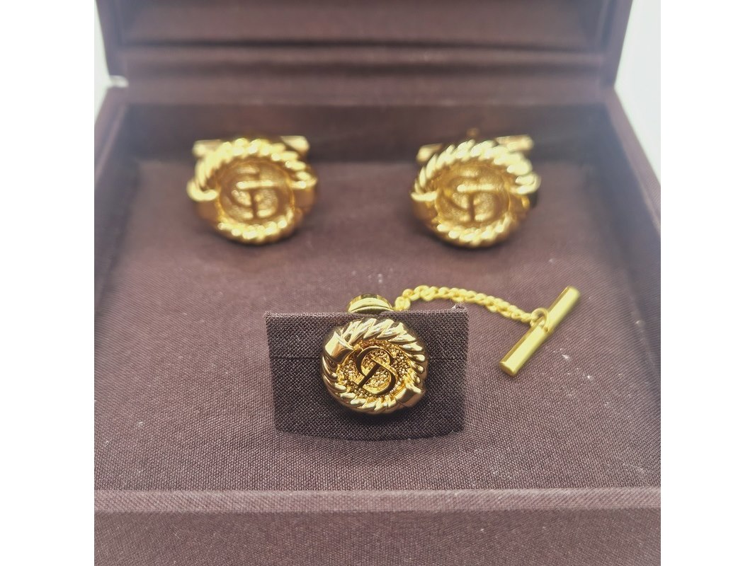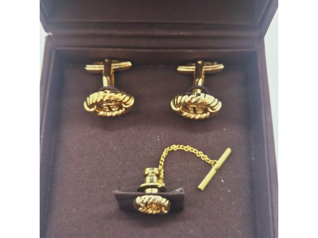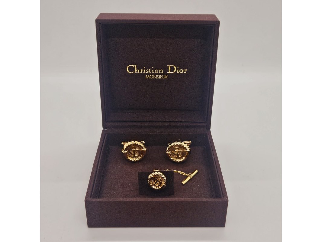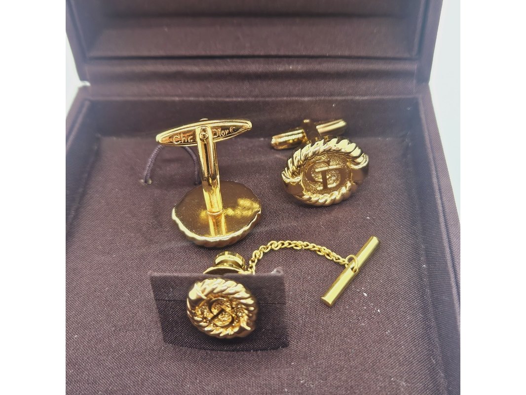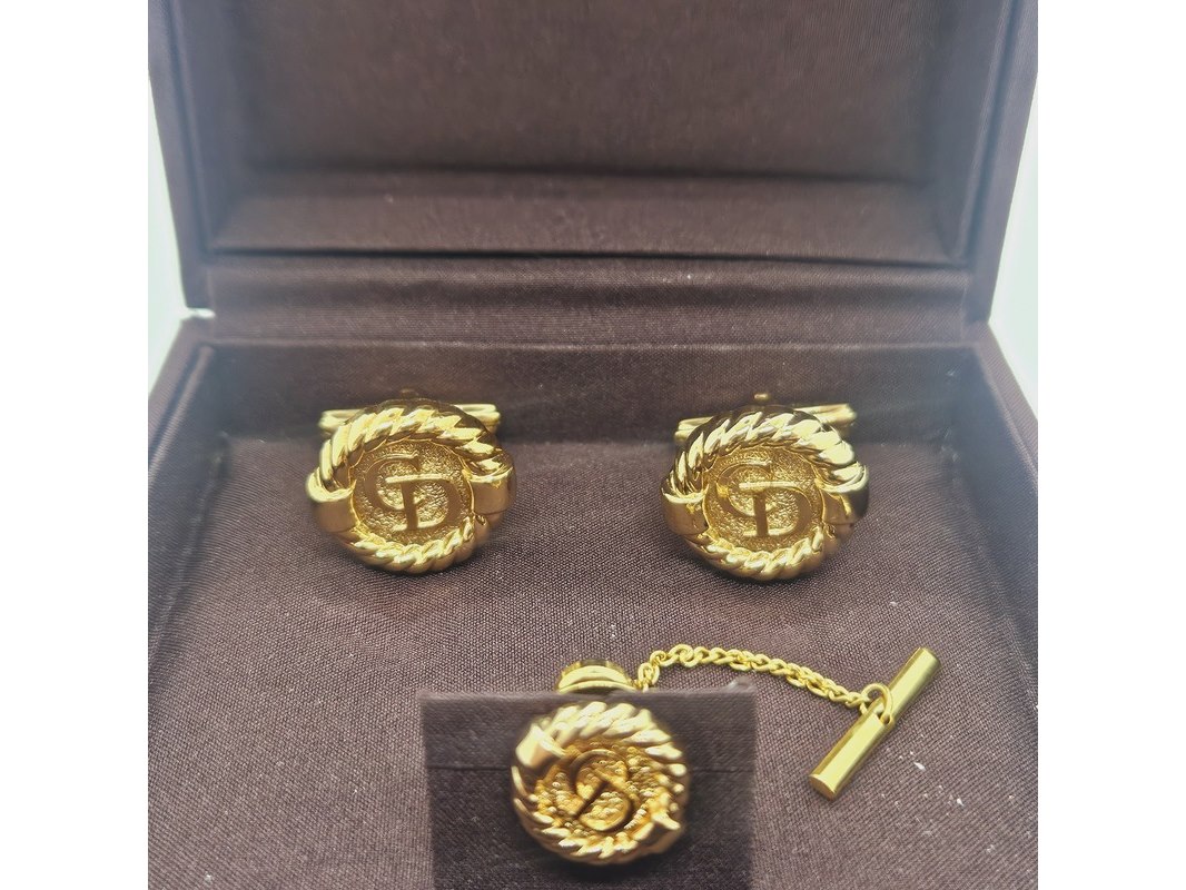 Product: Christian Dior goldplated manchetknopen + stropdas houder Specificaties: Merk: Cristian Dior. Goldplated manchetknopen + stropdas houder. Inclusief Christian Dior doos.