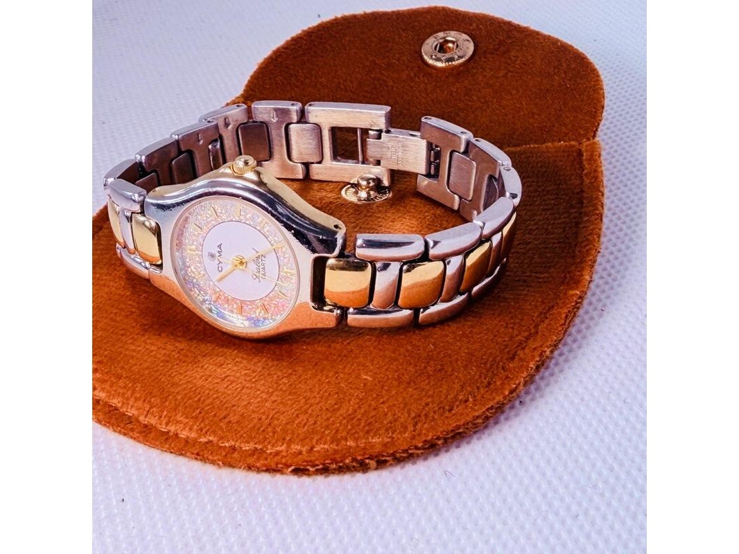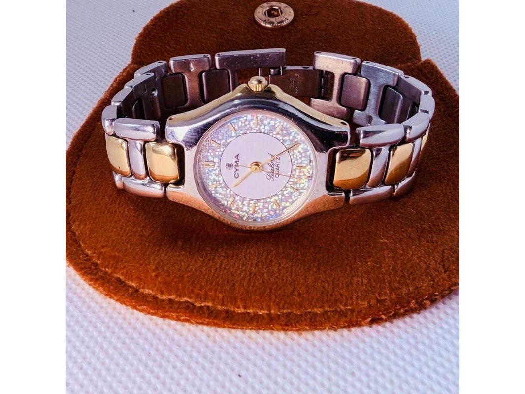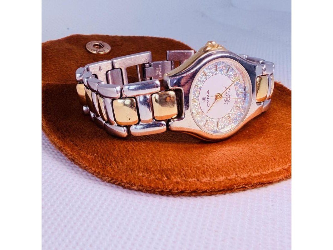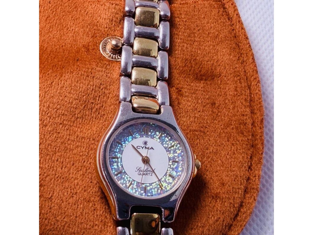 Zwitserse cyma sealord juweliershorloge met holografische glitter wijzerplaat