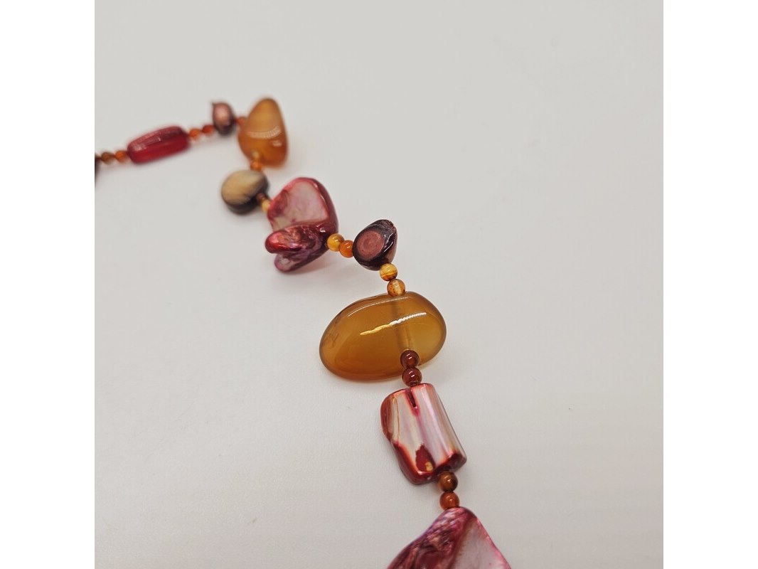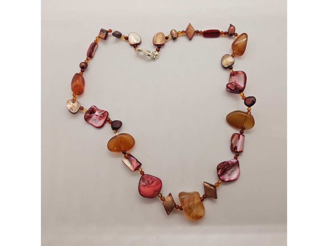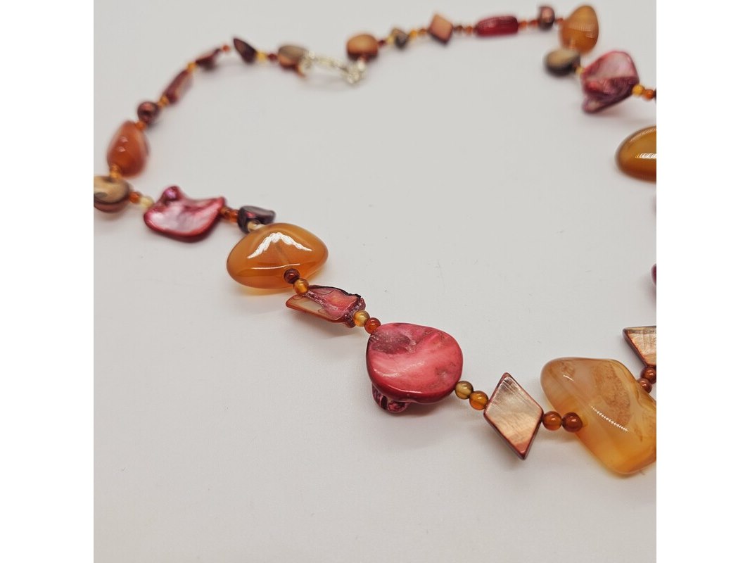 Collier zoetwater parels, gepolijst parelmoer en natuursteen
