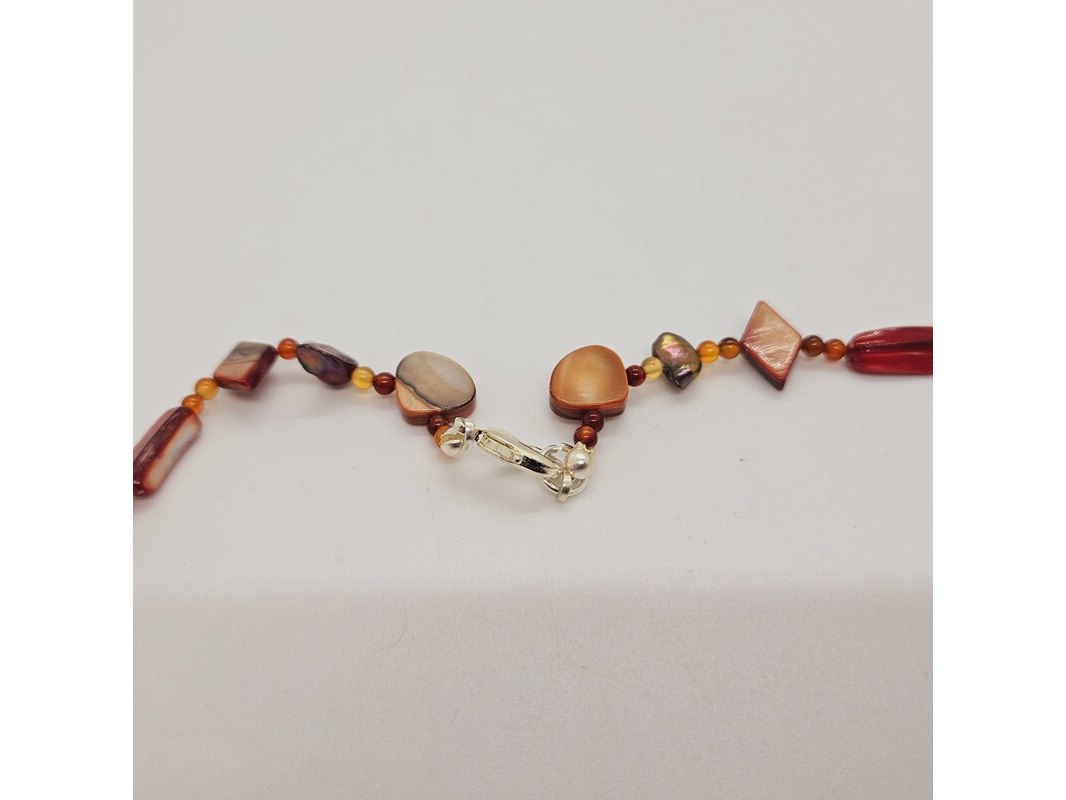 Product: Collier zoetwater parels, gepolijst parelmoer en natuursteen Specificaties: Collier zoetwater parels, gepolijst parelmoer en natuursteen
