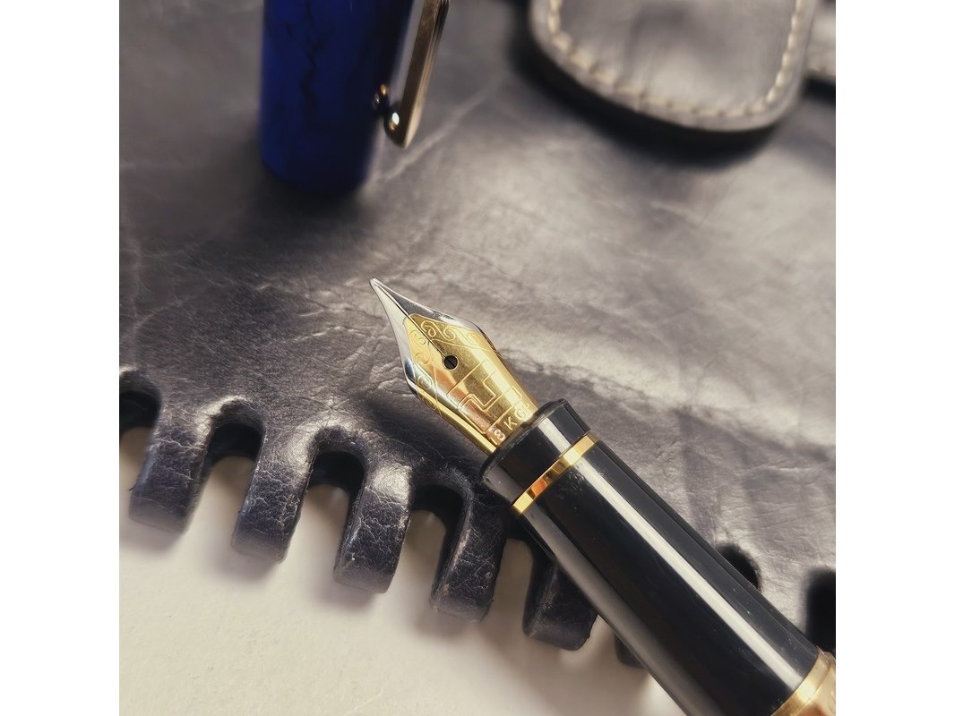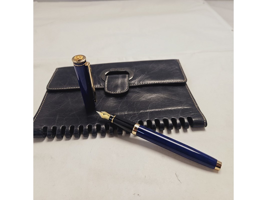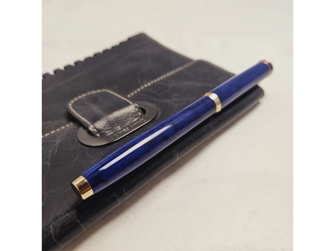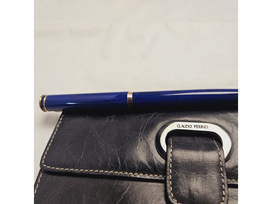 Product: Elysee Capitol 18kt GP vulpen inclusief leren Claudio Ferrici notitieboek Conditie: Nieuw Specificaties: 18kt goldplated nib en frills. Inclusief leren Claudio Ferrici notitieboek. In blue marble uitvoering.
