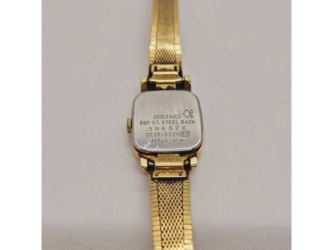 Product: Seiko 2C20-5320 dameshorloge met goudkeurmerk Afmeting: 18mm Conditie: Gebruikt Specificaties: Quartz uurwerk loopt goed. Merk: Seiko. Ref. nummer: 2C20-5320. Met SGP keurmerk (SeikoGoldPlated/SuperGoldPlated) Heeft gebruikssporen.