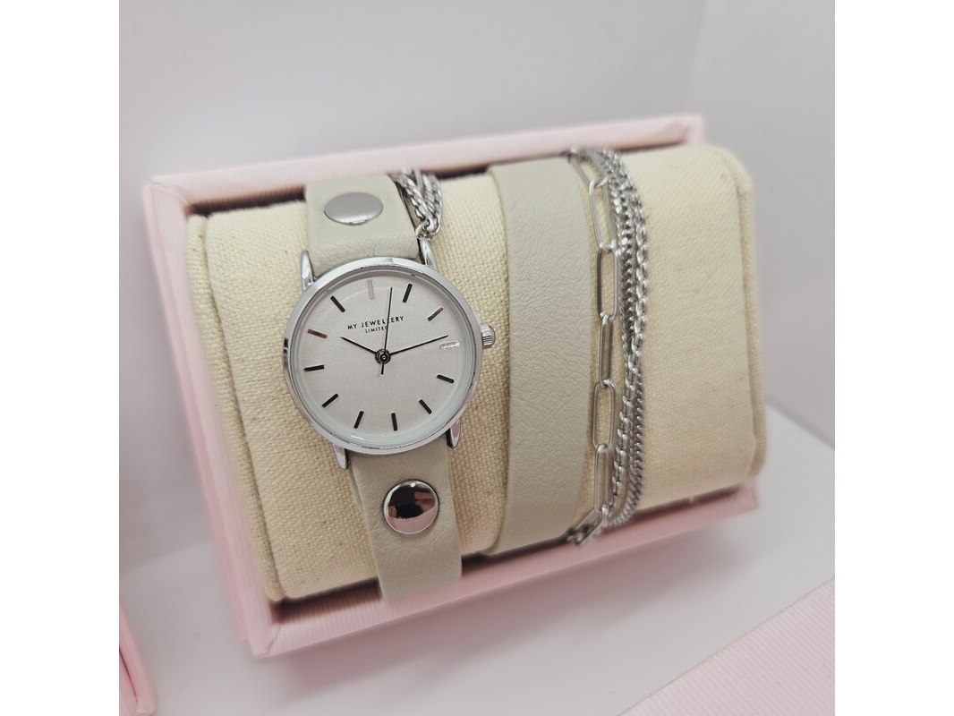Product: Collectie My Jewellery horloges Specificaties: Nieuw uit oude voorraad. Kunnen gebruikssporen hebben aan de band van het passen en terugdoen in doosjes, zijn showmodellen geweest.